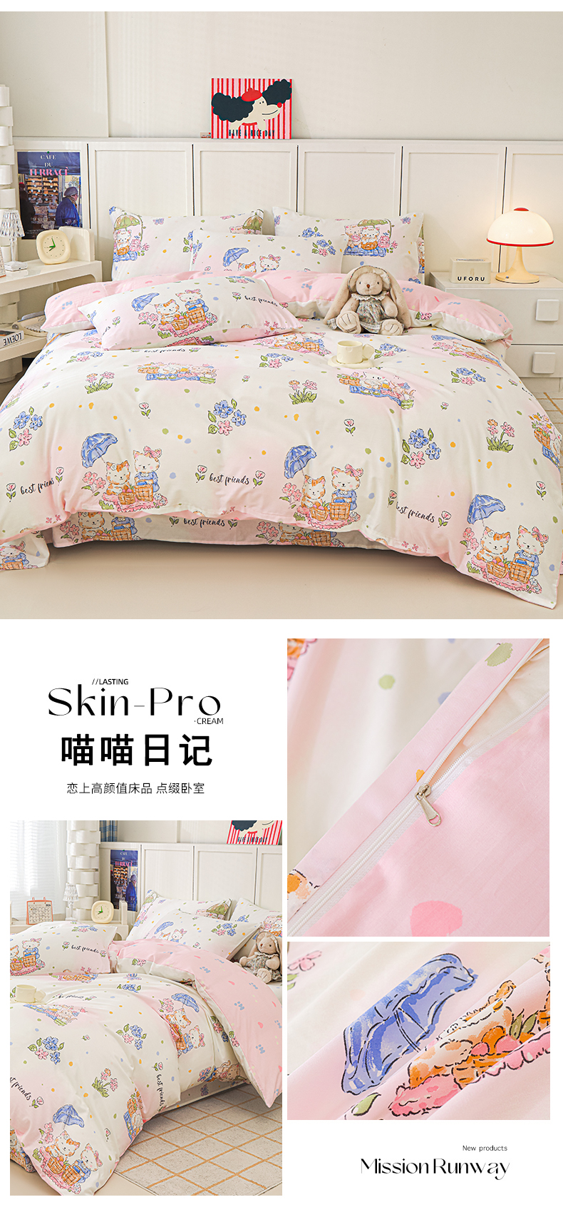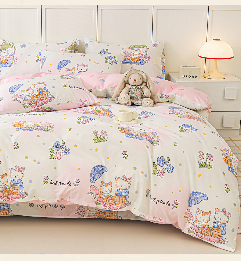 金鑫汇家纺 2025新款全棉印花单被套 喵喵日记