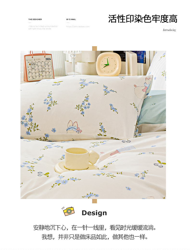 (总)金鑫汇家纺 2026新款全棉印花小清新四件套系列-可露丽,海盐可露丽,浅咖可露丽,浅绿可露丽,月下花影-桔,月下花影-蓝,月下花影-绿