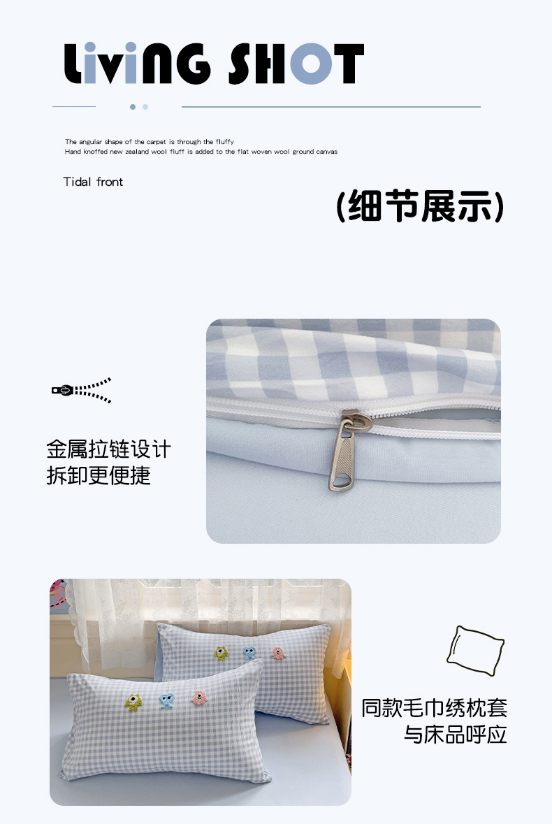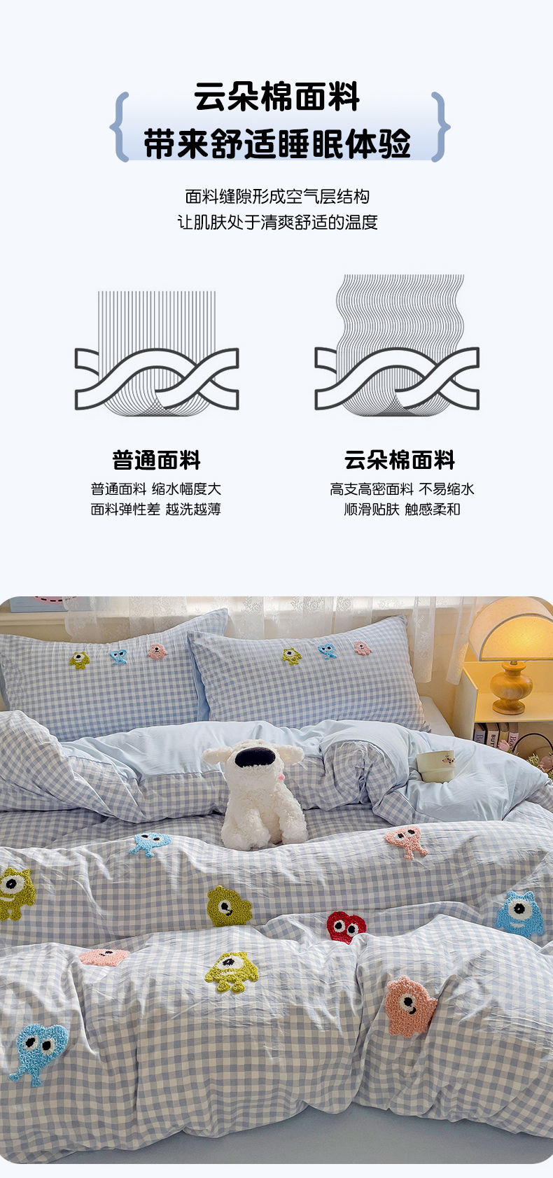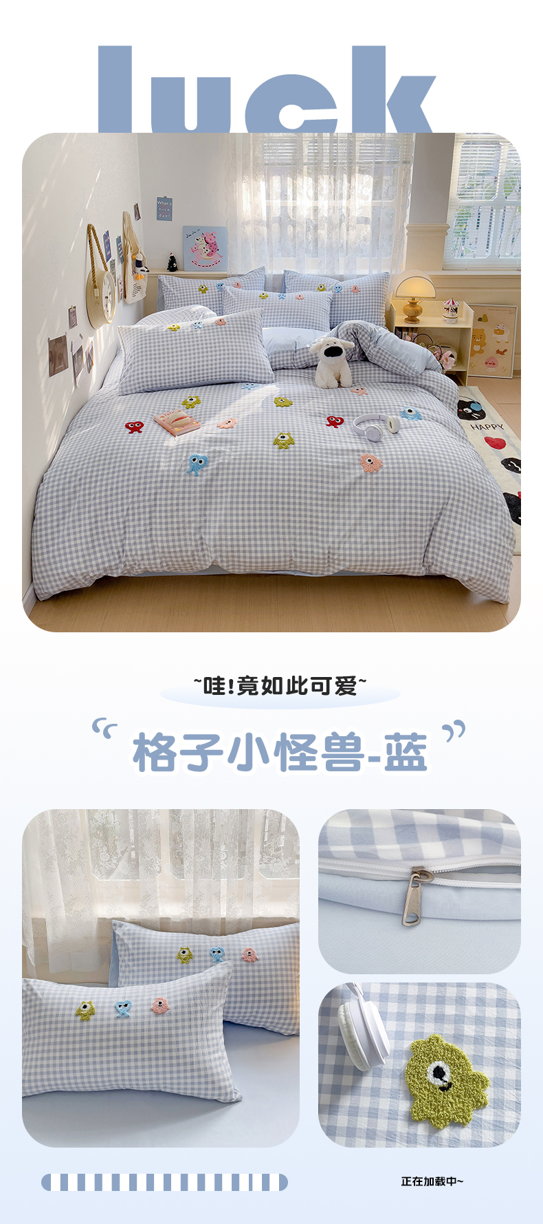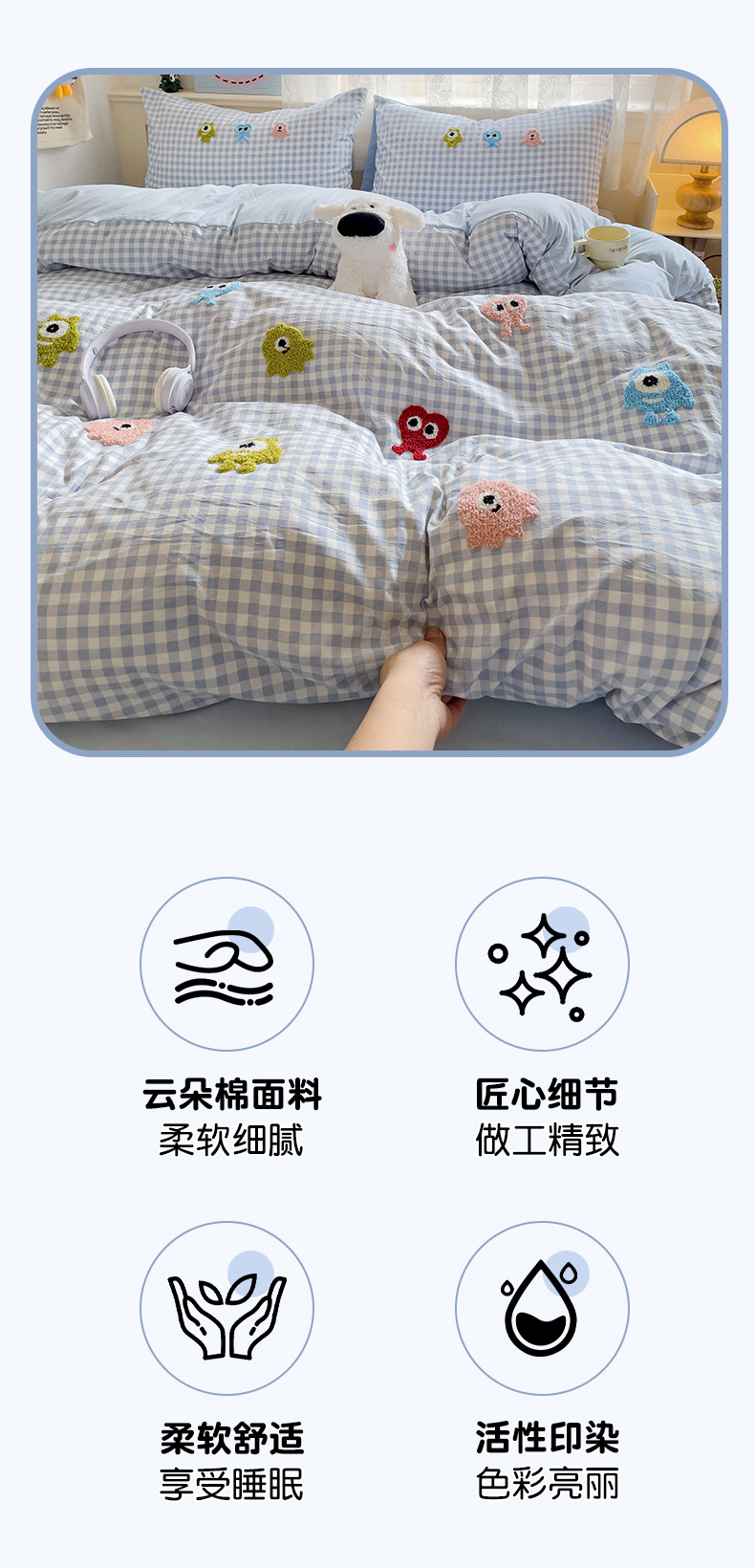 当前位置: 91家纺网 > 商品网购 > 床品套件 > 四件套 > 其它四件套 > 梦之岛 2025新款多巴胺ins云朵棉小怪兽可爱毛巾绣四件套 格子小怪兽-蓝