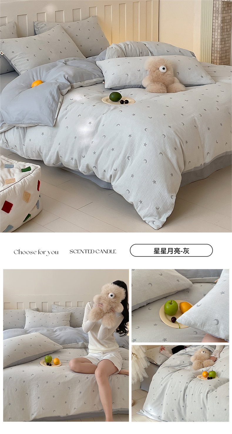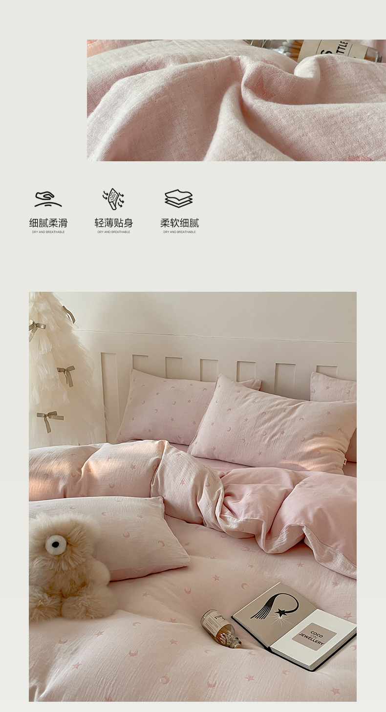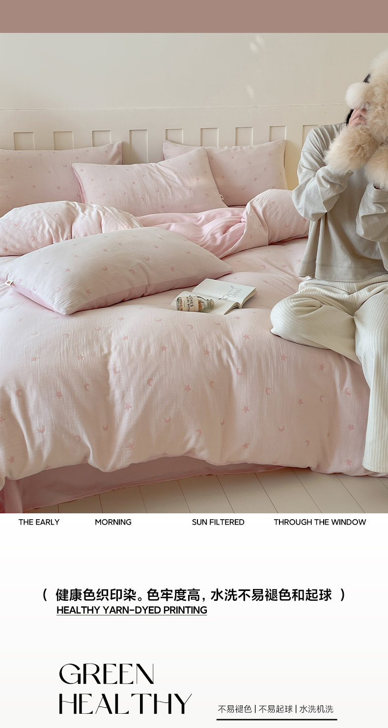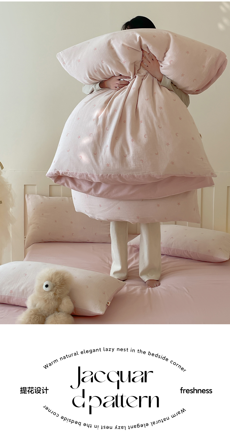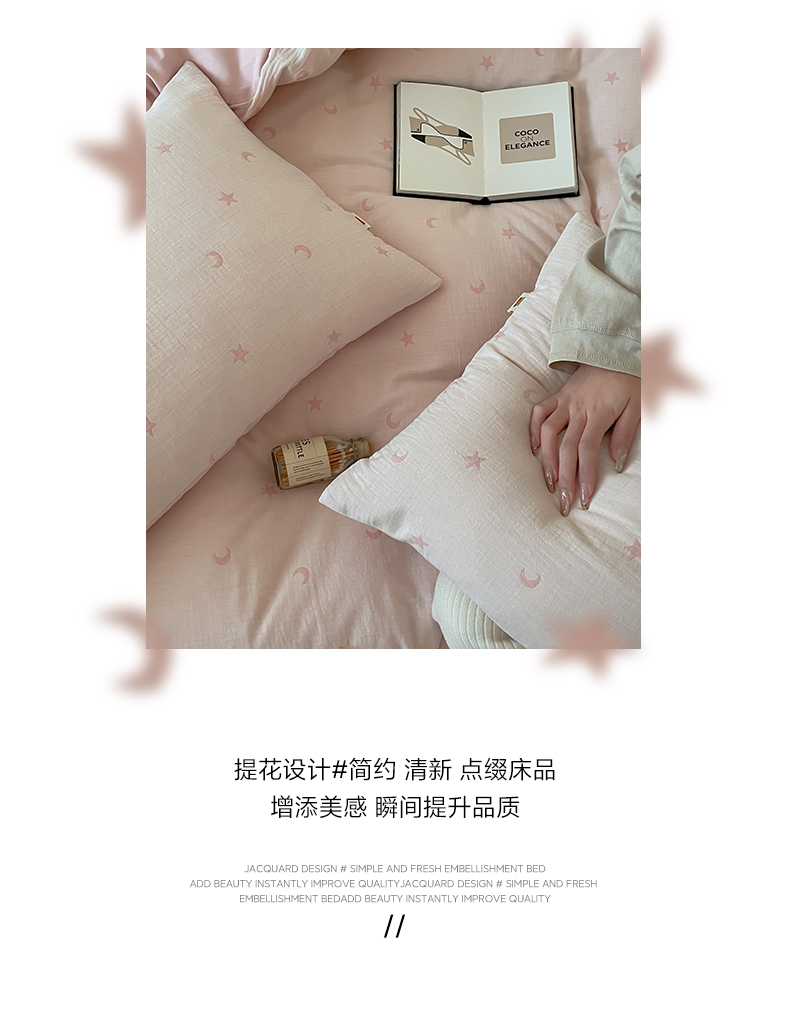 当前位置: 91家纺网 > 商品网购 > 床品套件 > 四件套 > 双层纱四件套 > (总)卡巴伦家纺 2025新款星星月亮-A类双层皱皱纱色织提花四件套【全网控价(折后券后)不低于标准278/加大298/小号238元】