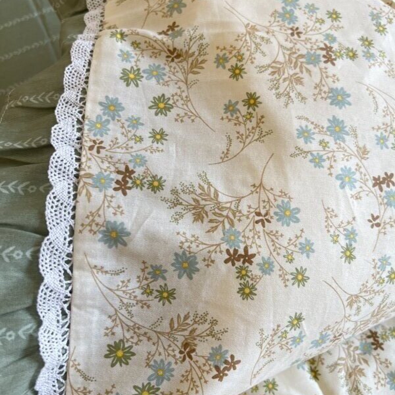 商品名称:棉生活家纺 2025新款全棉小清新花边款蕾丝四件套 游花间