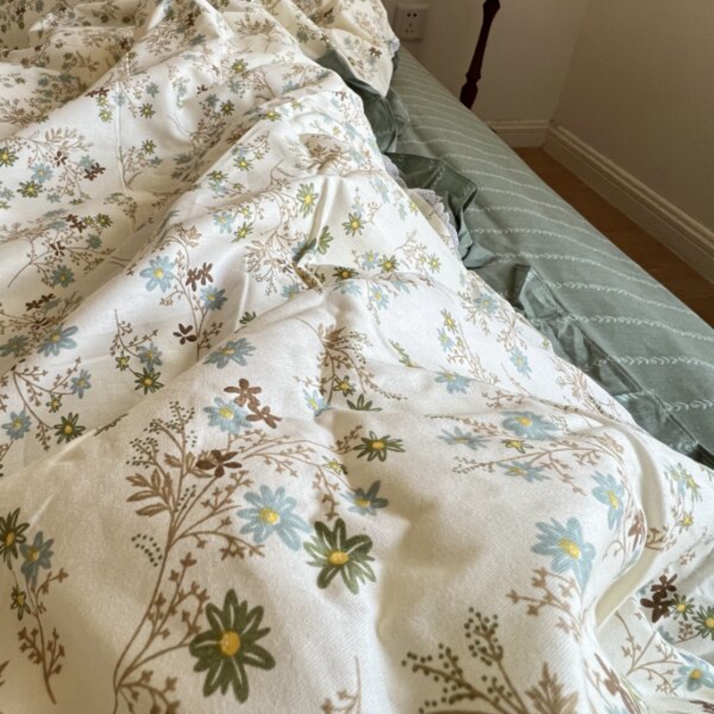 棉生活家纺 2025新款全棉小清新花边款蕾丝四件套 游花间