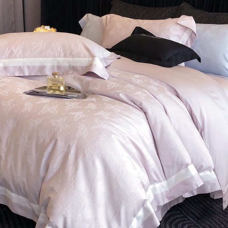 (总)佳汐蓝家纺 2025春夏新款贡缎长绒棉蝶梦花缘四件套,蝶梦花缘·粉,蝶梦花缘·紫