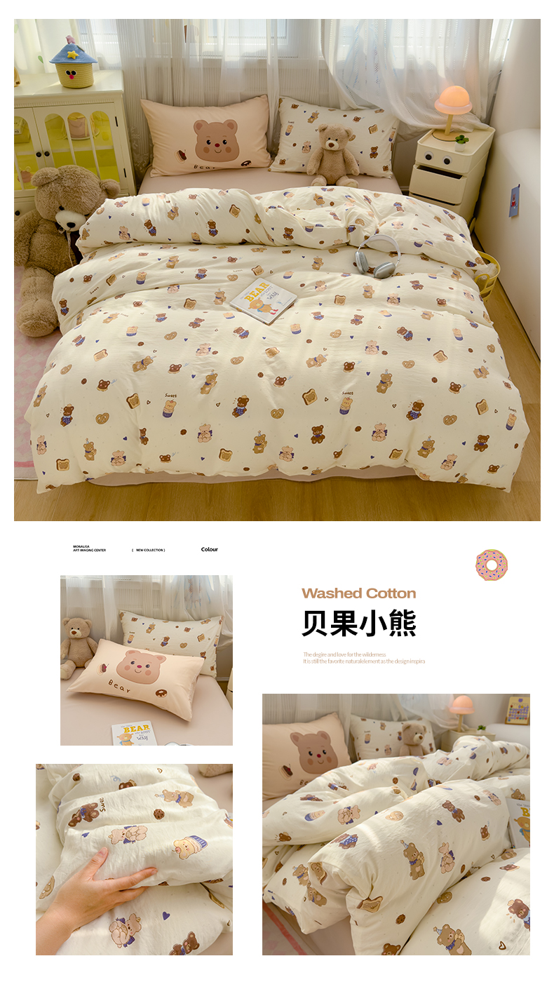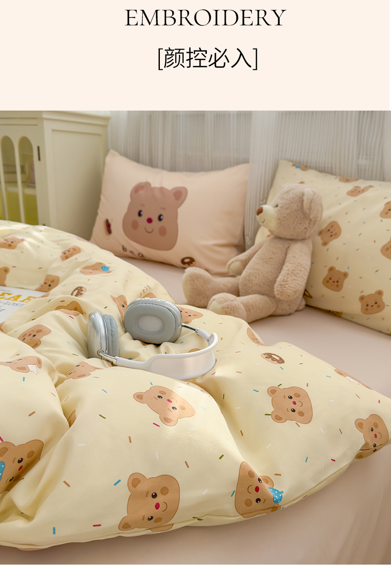 (总)宏源家纺 2025新款芦荟棉印花亲肤四件套,花园熊,快乐玩伴,萌萌猫粉,萌萌猫灰,甜品派对-蓝,甜品派对-玉,小猫日记,小新灰,小新蓝,熊仔仔