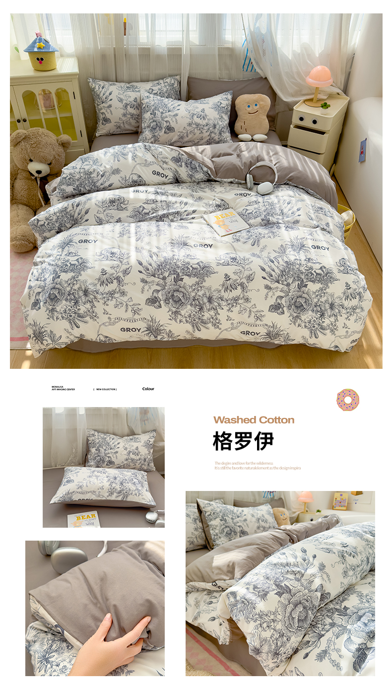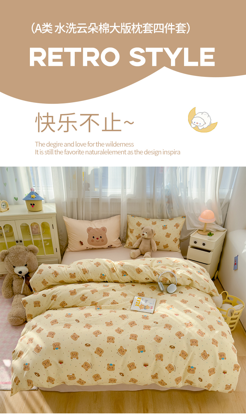商品名称:(总)宏源家纺 2025新款A类大版枕套水洗云朵棉四件套