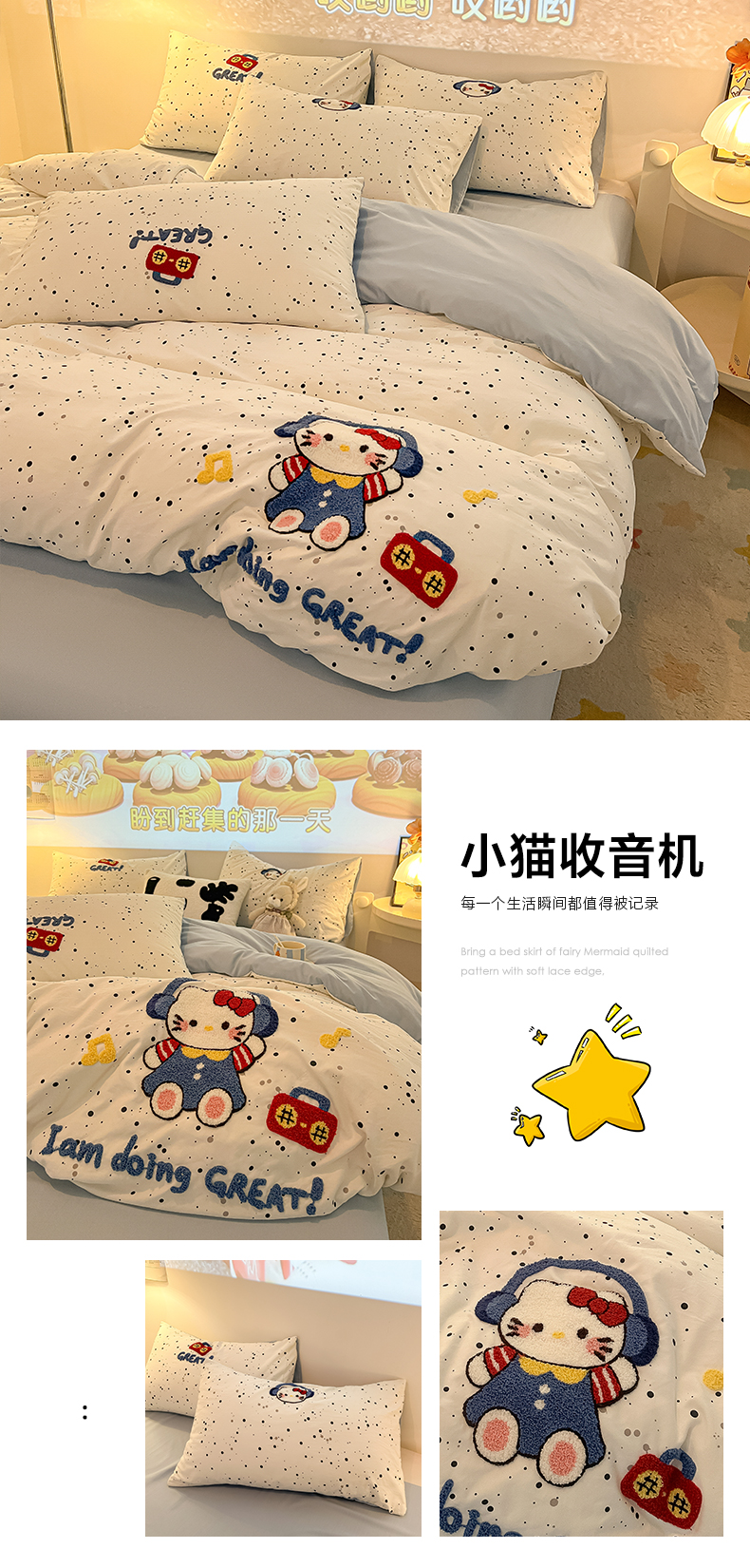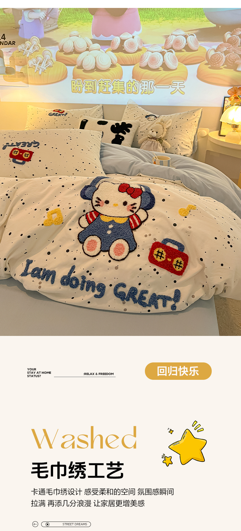 (总)韩巢家纺 2025新款云朵棉可爱小猫咪毛巾绣被套床单床上用品四件套宿舍三件套(提供卖家秀)