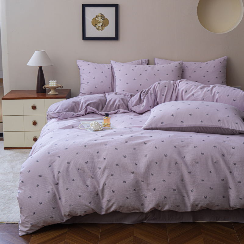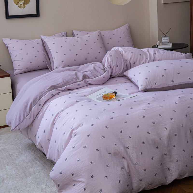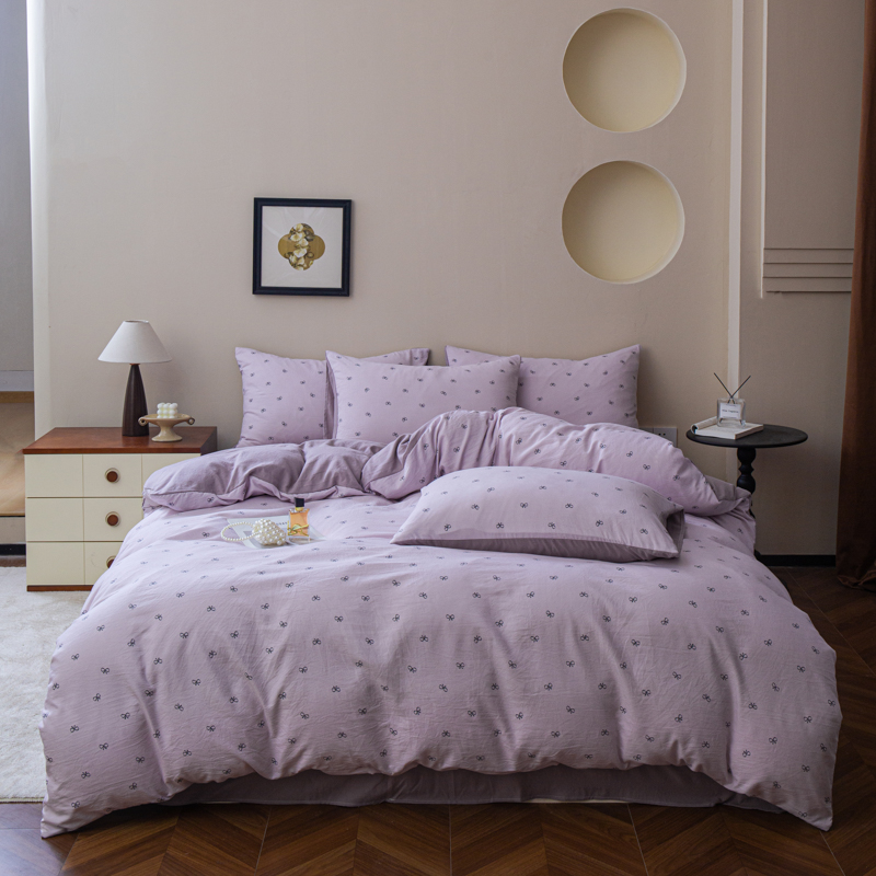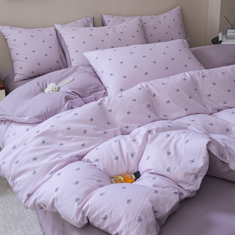 商品名称:利禾家纺 2025新款针织天竺棉水洗棉四件套被套学生宿舍三件套床单款 莫奈紫