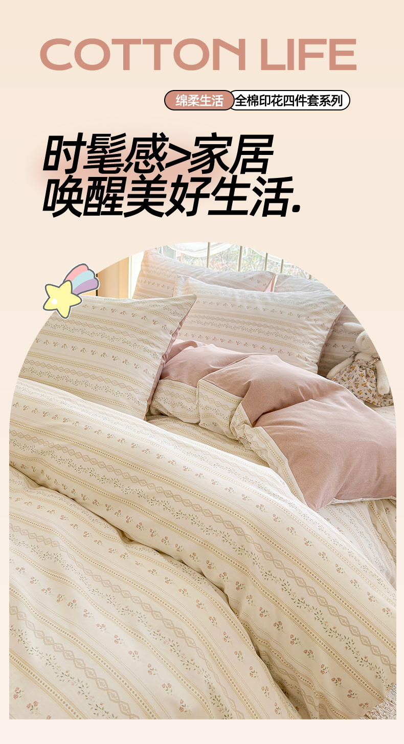 当前位置: 91家纺网 > 商品网购 > 床品套件 > 四件套 > 全棉普通四件套 > 名兮家居 2025年新款13372全棉印花四件套-卡通系列 樱桃花