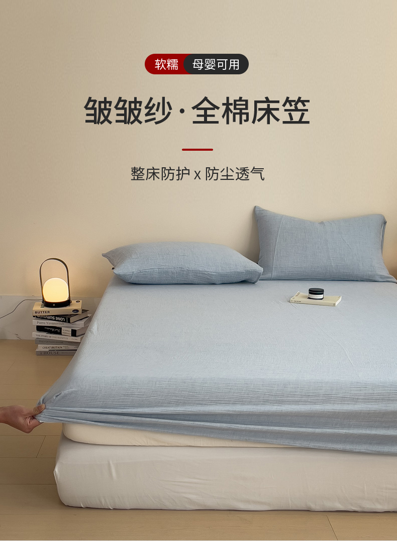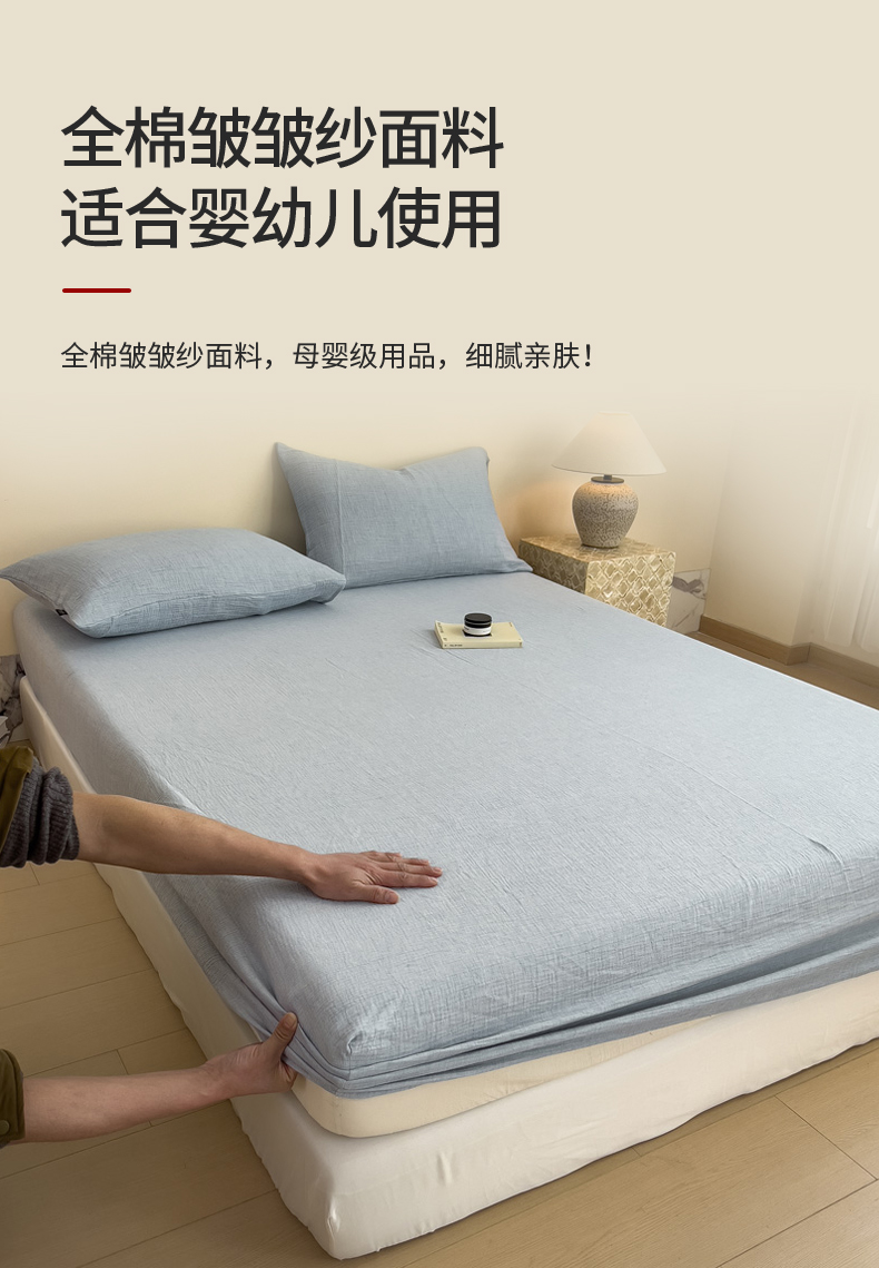 商品名称:席世家皱皱纱床笠 烟灰兰