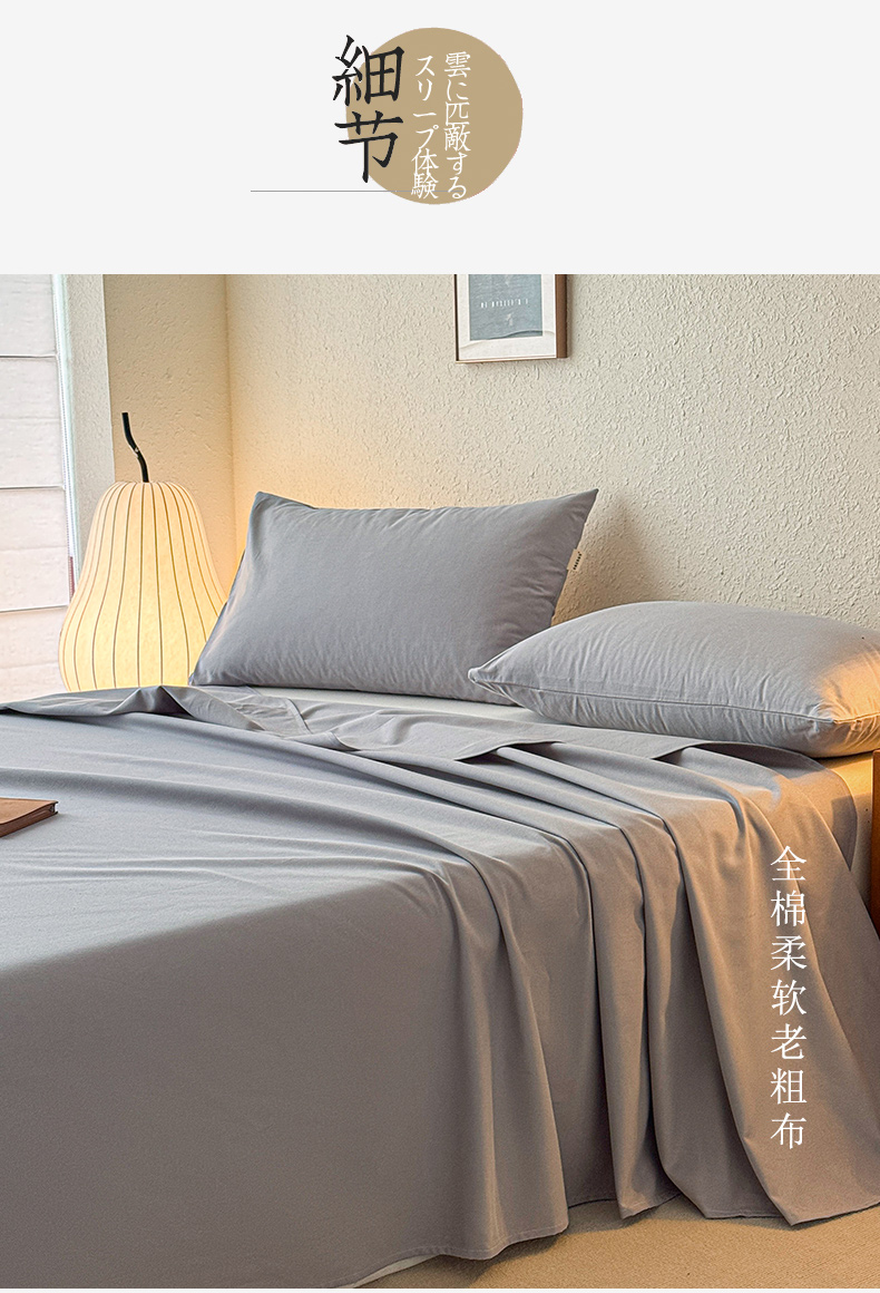 卧趣家纺 2025新品全棉纯色老粗布单品床单系列 雪花银