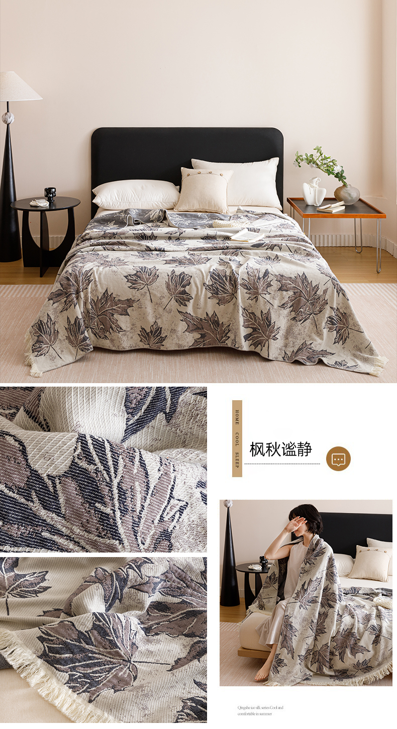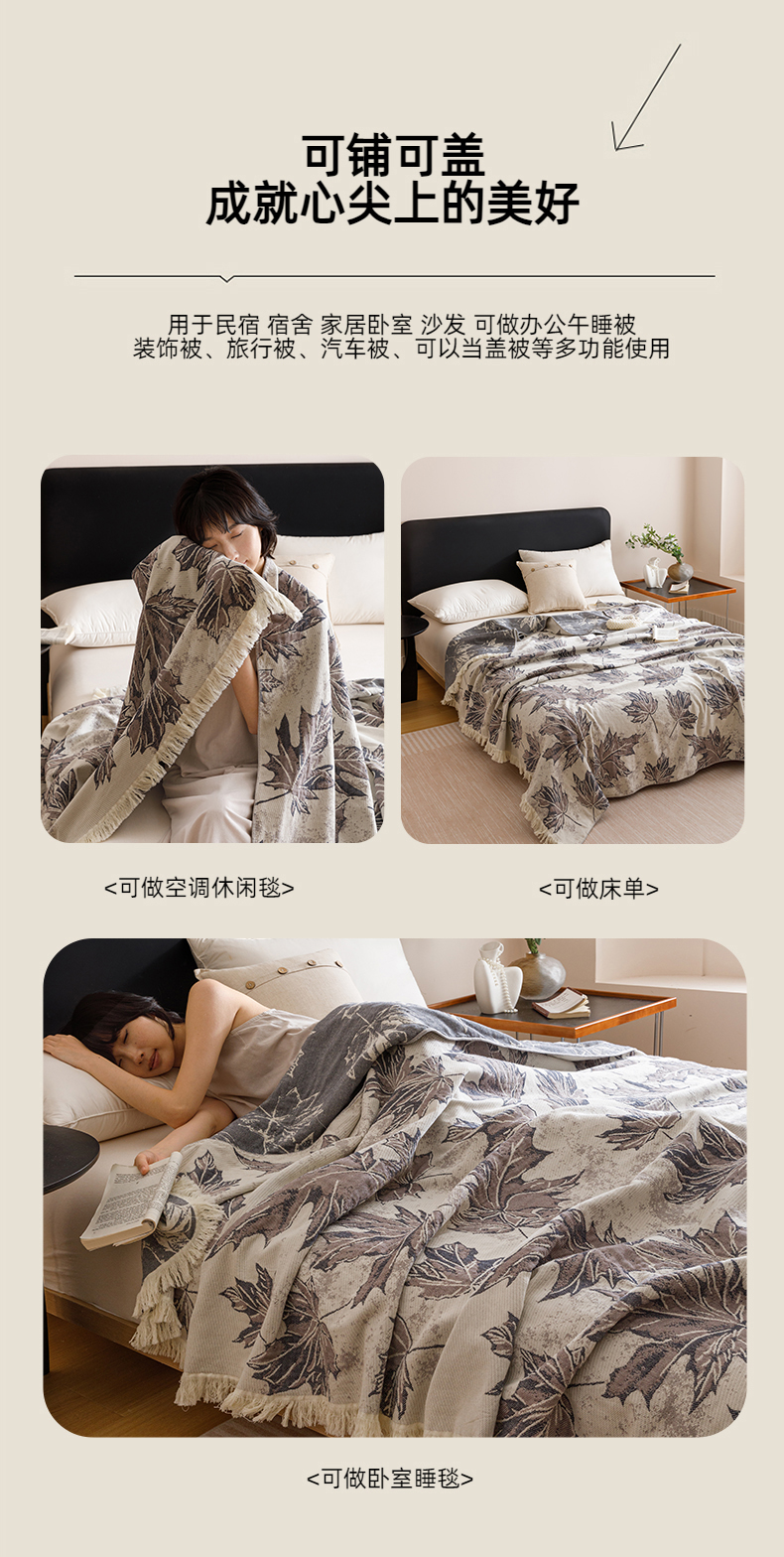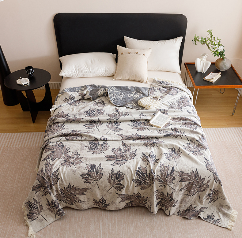 悦然毛巾被 2025新款全棉工艺四层纱毛巾被 枫秋谧静