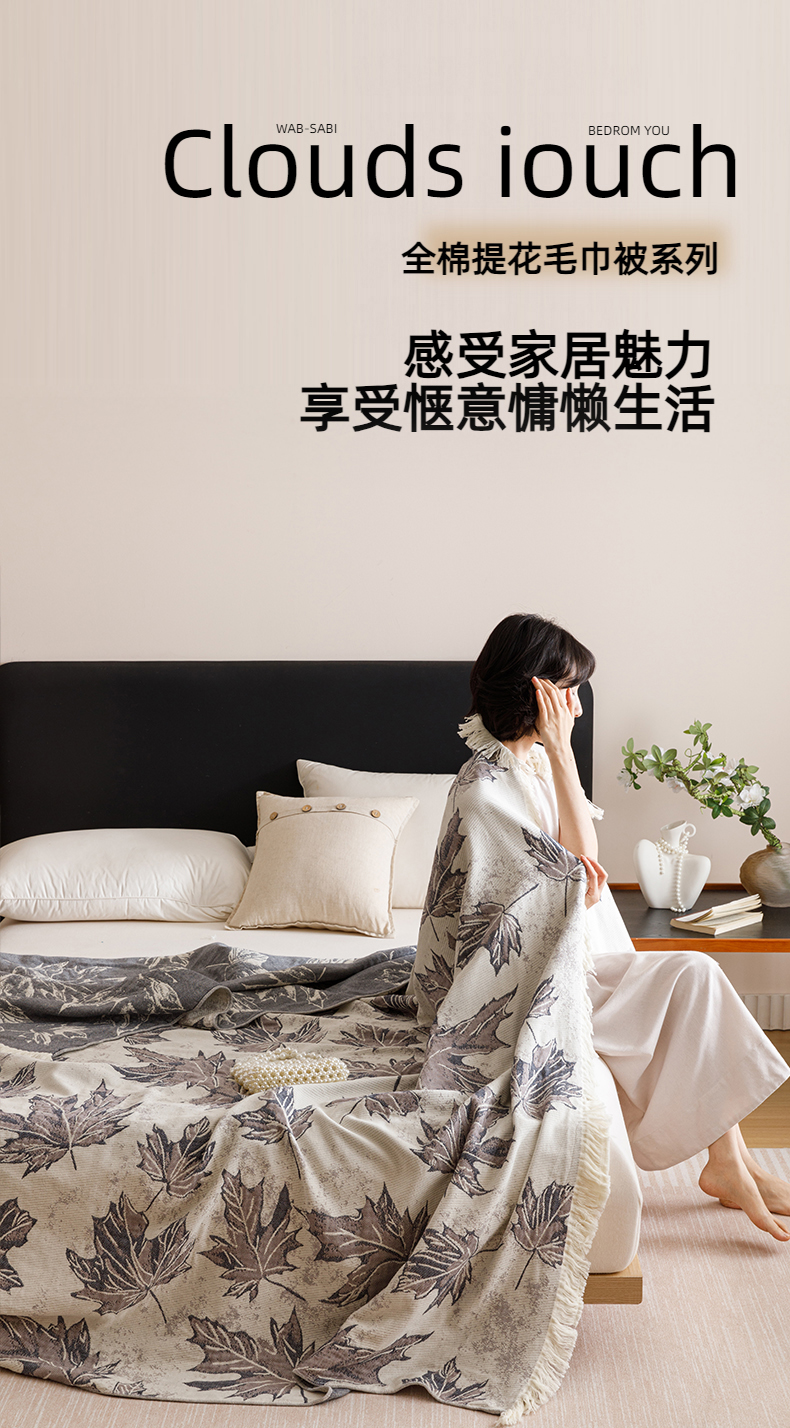商品名称:悦然毛巾被 2025新款全棉工艺四层纱毛巾被 枫秋谧静