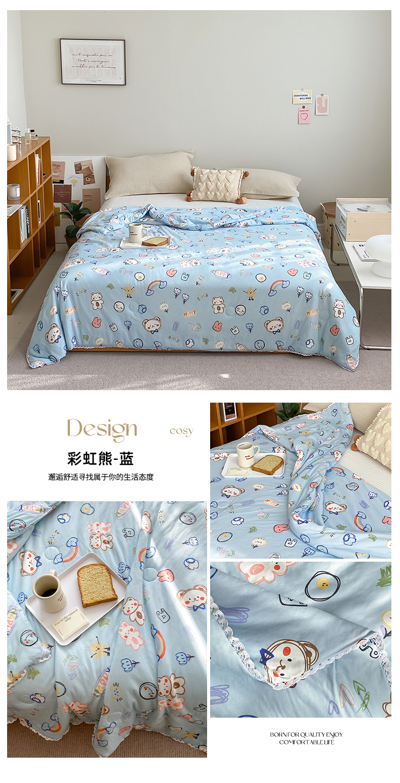 心卓婴童馆 2025新款A类针织棉被芯—影棚图 彩虹熊-蓝