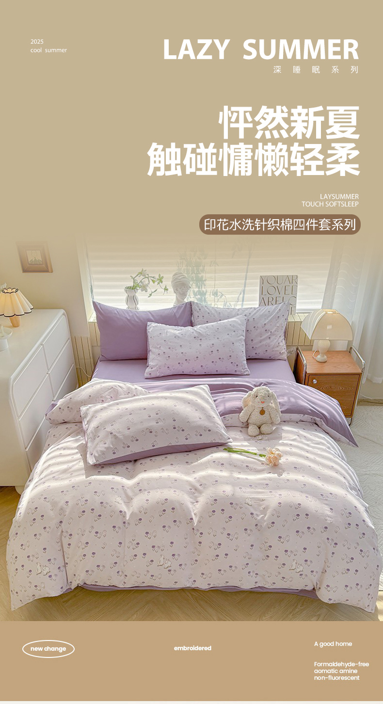 商品名称:秋艳家纺 2025新款水洗针织棉四件套 椿与