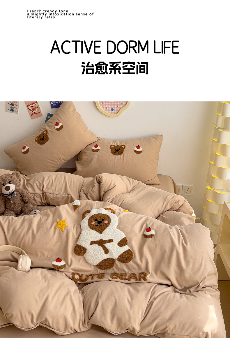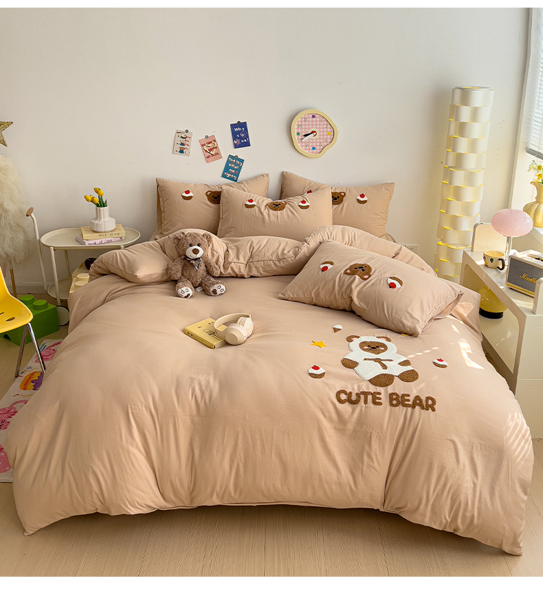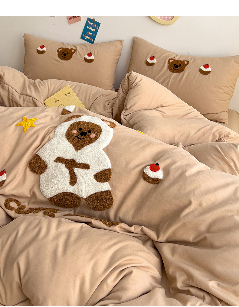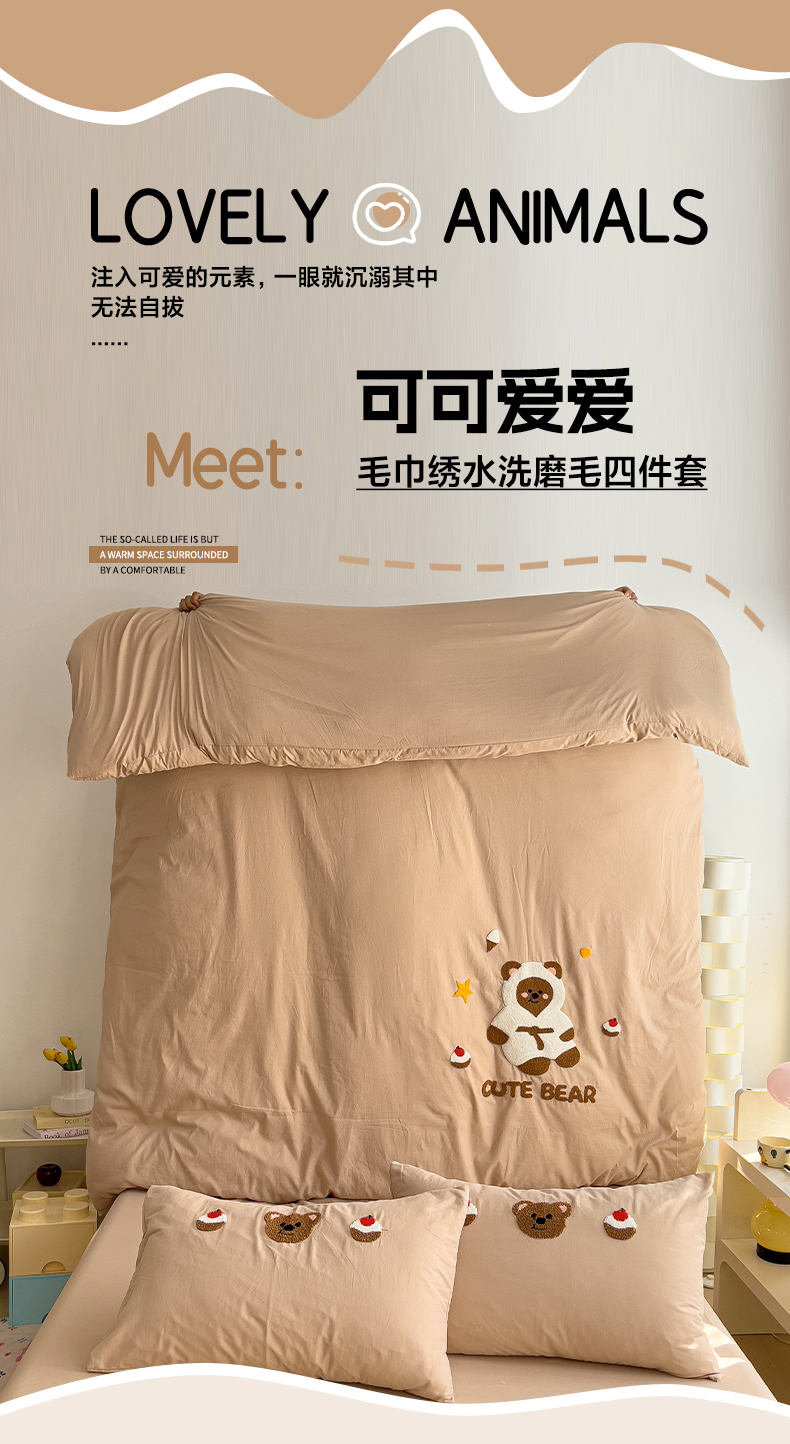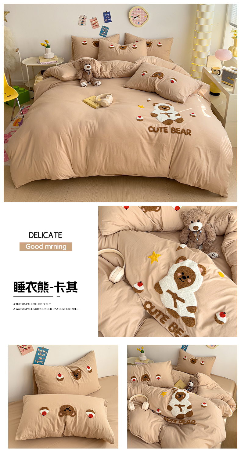 当前位置: 91家纺网 > 商品网购 > 床品套件 > 四件套 > 水洗棉四件套 > 逸尚阁 2025新款腊肠狗睡衣熊毛巾绣水洗棉四件套【提供买家秀】 睡衣熊-卡其
