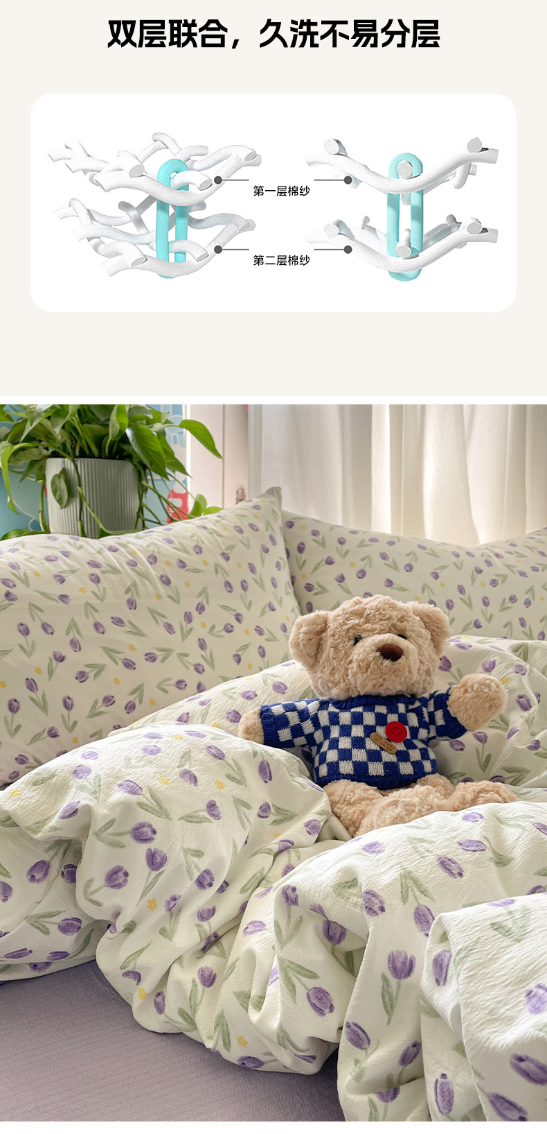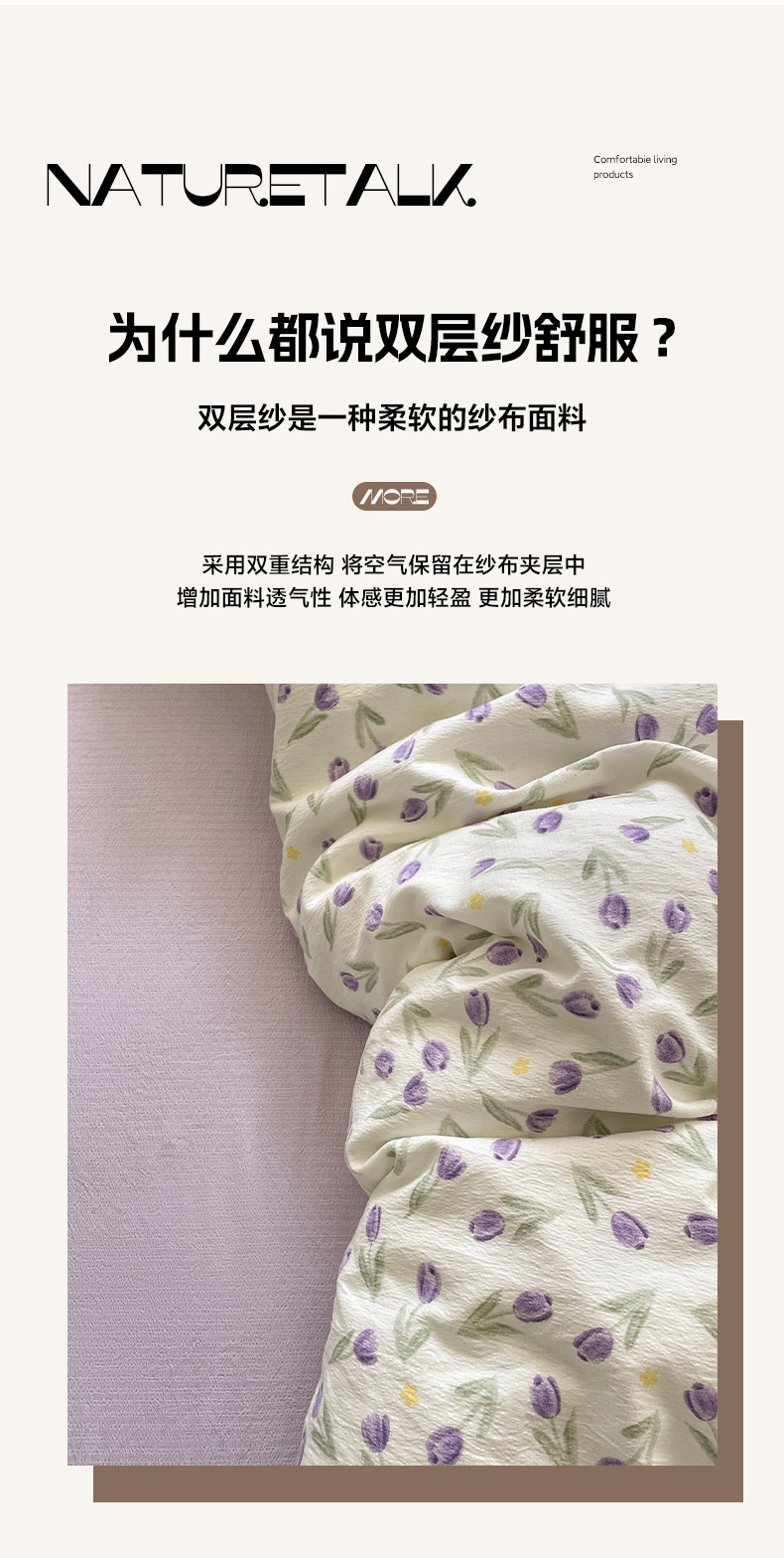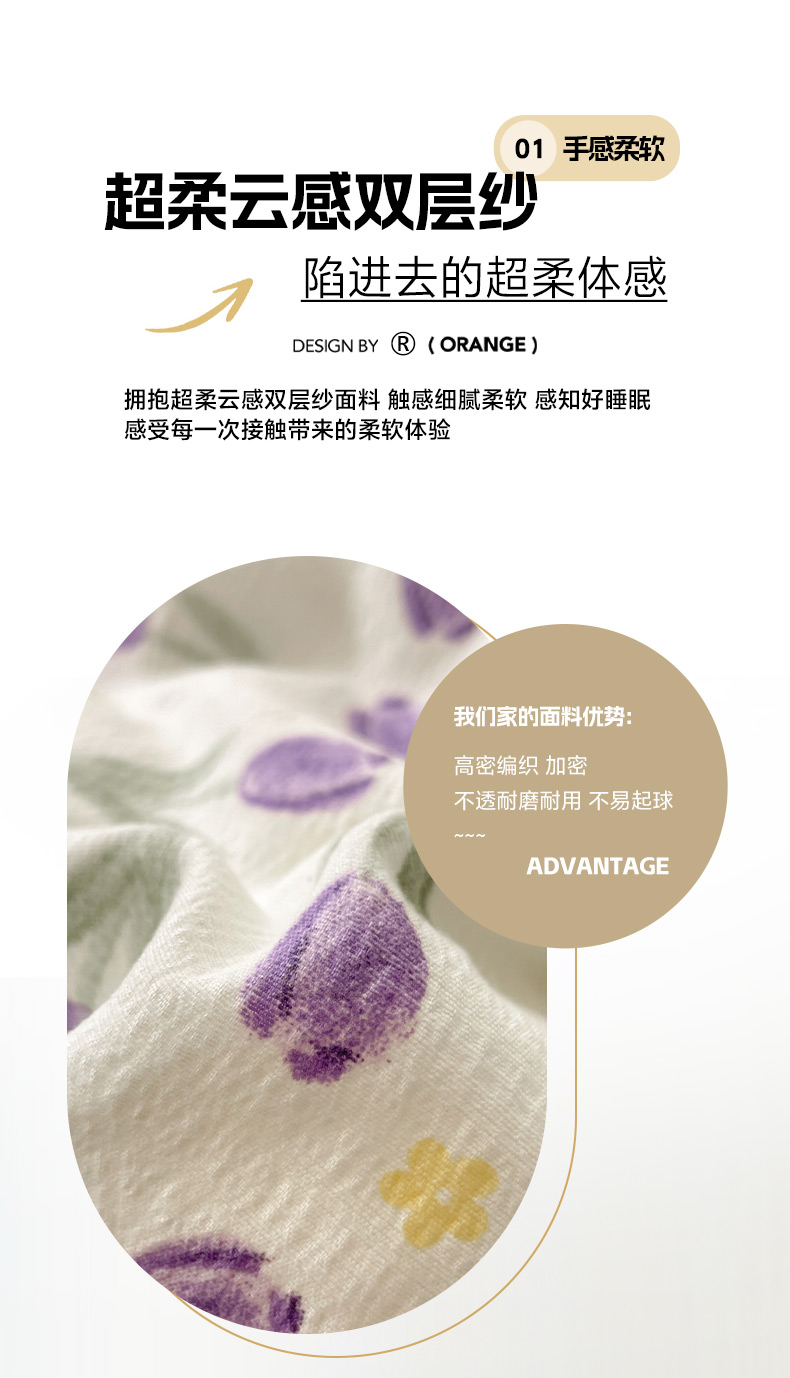 当前位置: 91家纺网 > 商品网购 > 床品套件 > 四件套 > 双层纱四件套 > 优承佳生活馆 2025新款有氧超柔云感双层纱三件套四件套单被套 场景二 春日