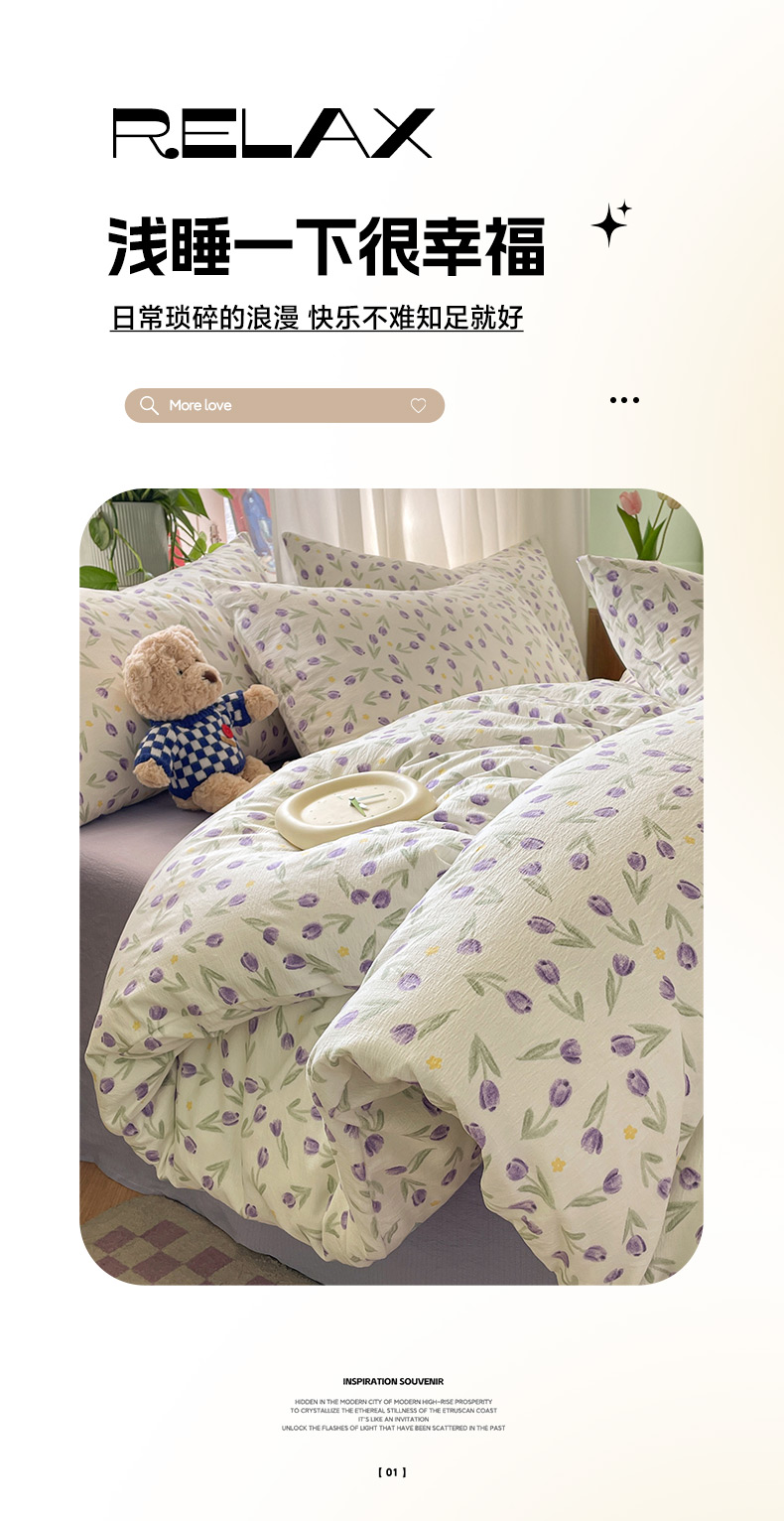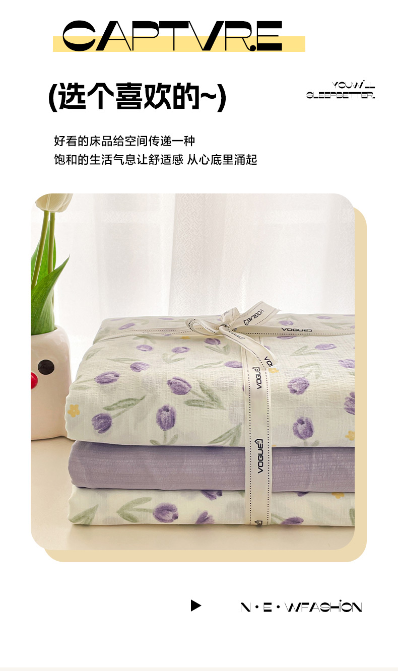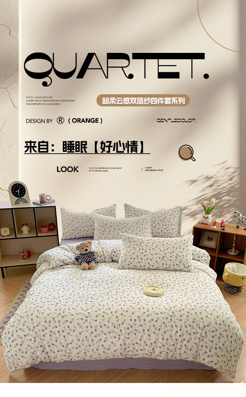 当前位置: 91家纺网 > 商品网购 > 床品套件 > 四件套 > 双层纱四件套 > 优承佳生活馆 2025新款有氧超柔云感双层纱三件套四件套单被套 场景二 春日