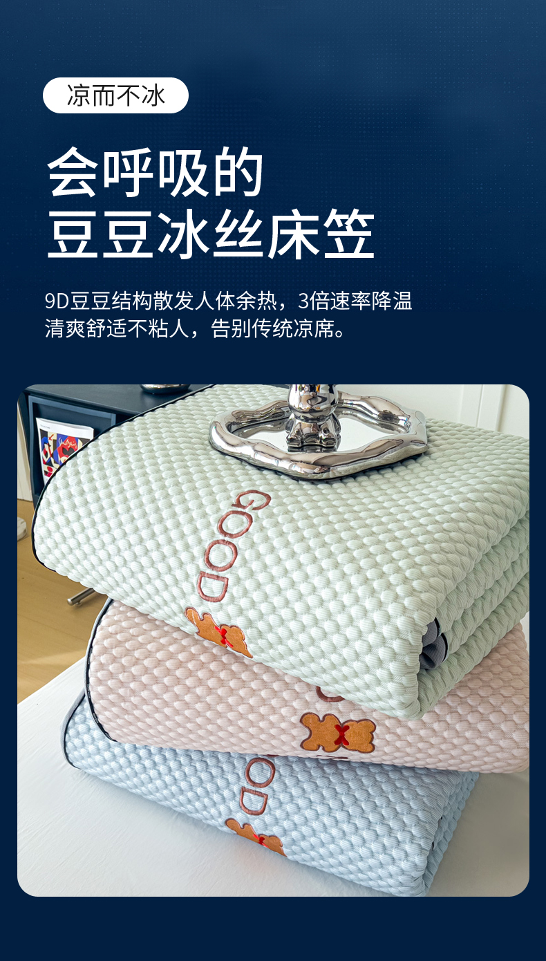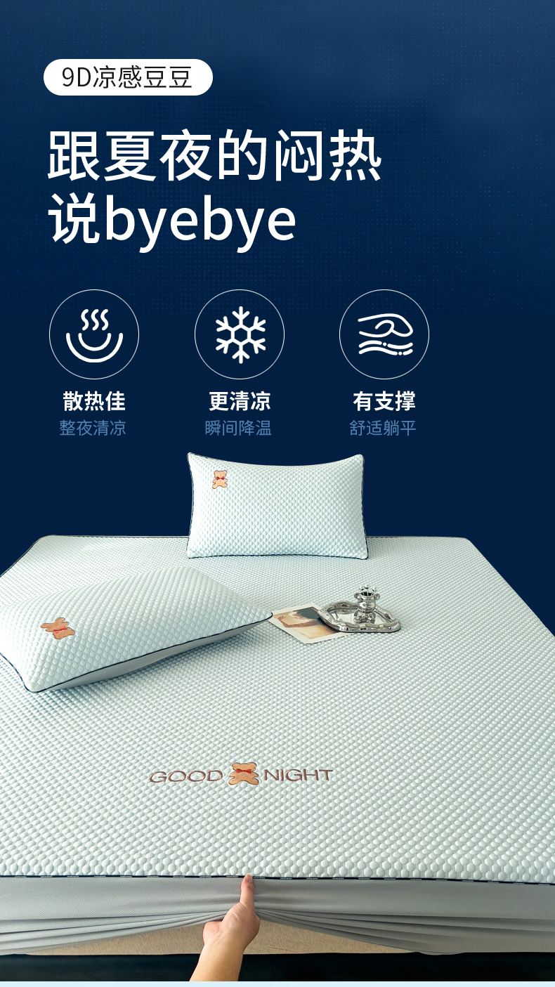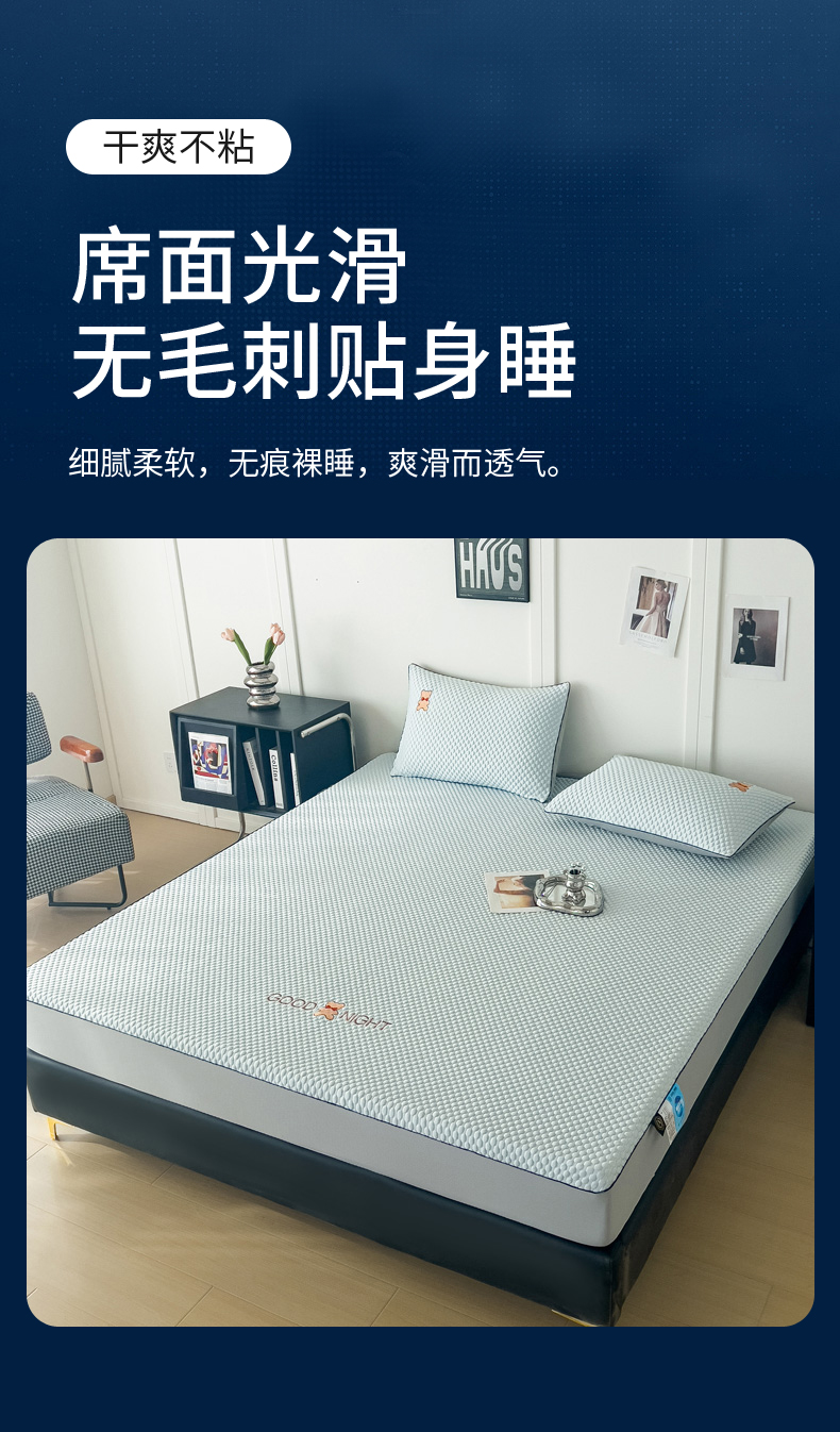 当前位置: 91家纺网 > 商品网购 > 床上用品 > 凉席 > 其他凉席 > 阿牛席业2025新款凉感软席系列-E-凉感嵌边豆豆床笠 晚安-蓝(嵌边床笠)
