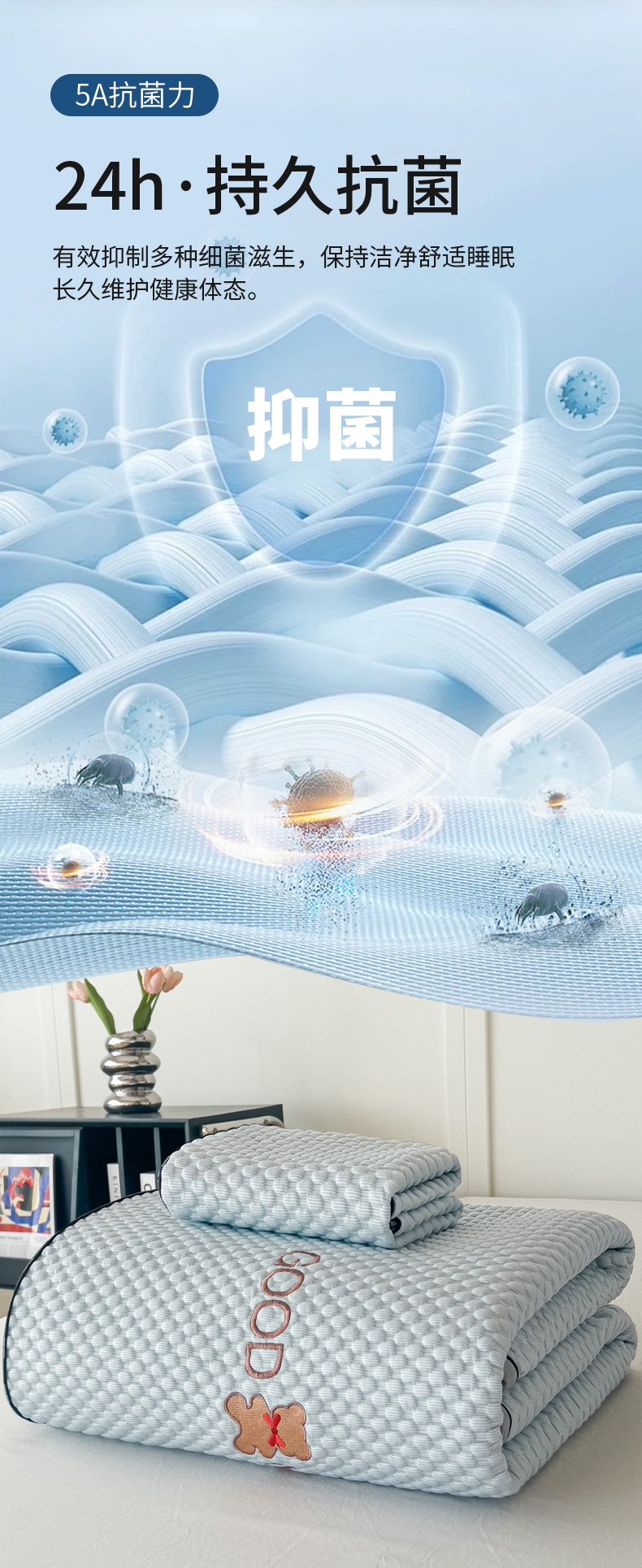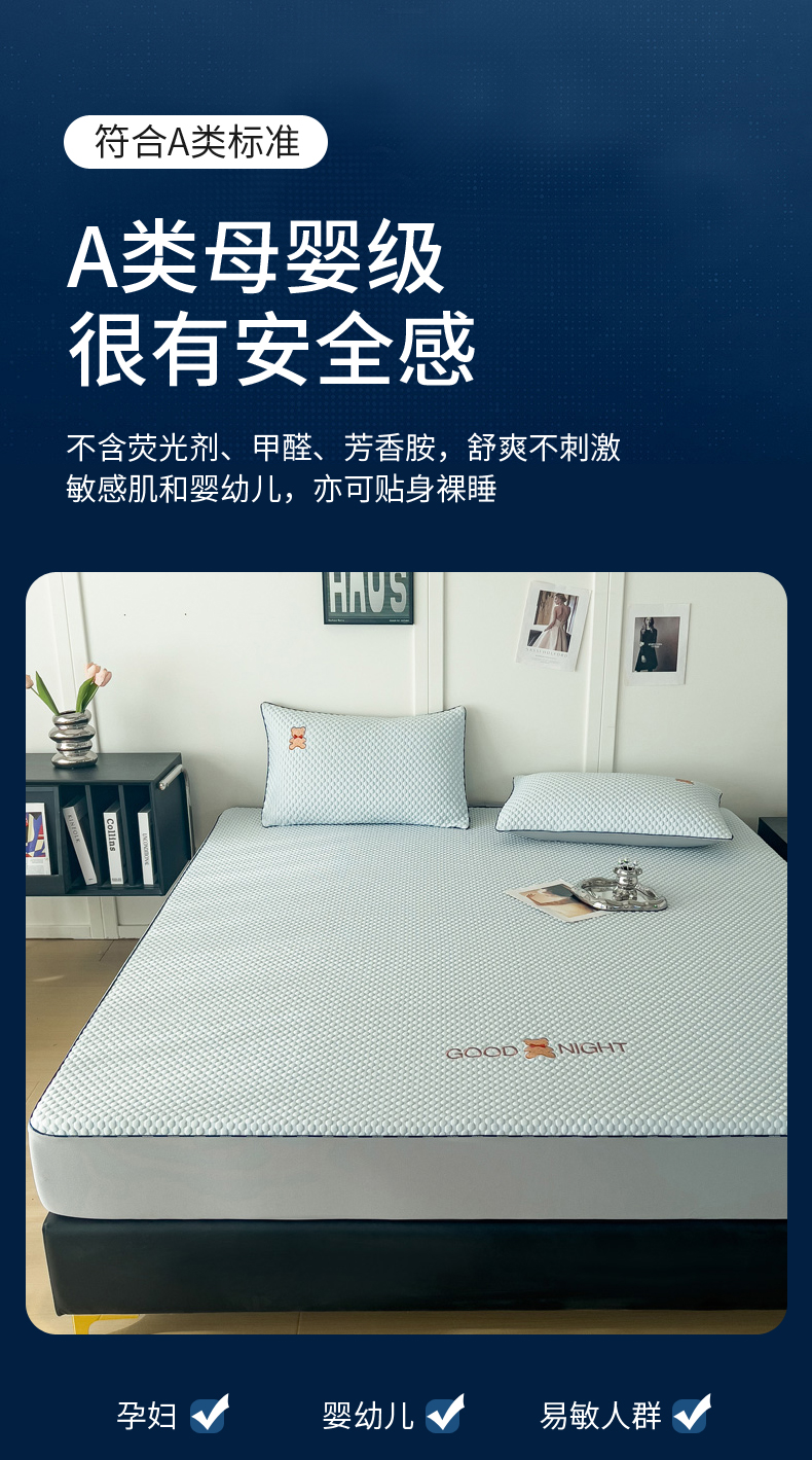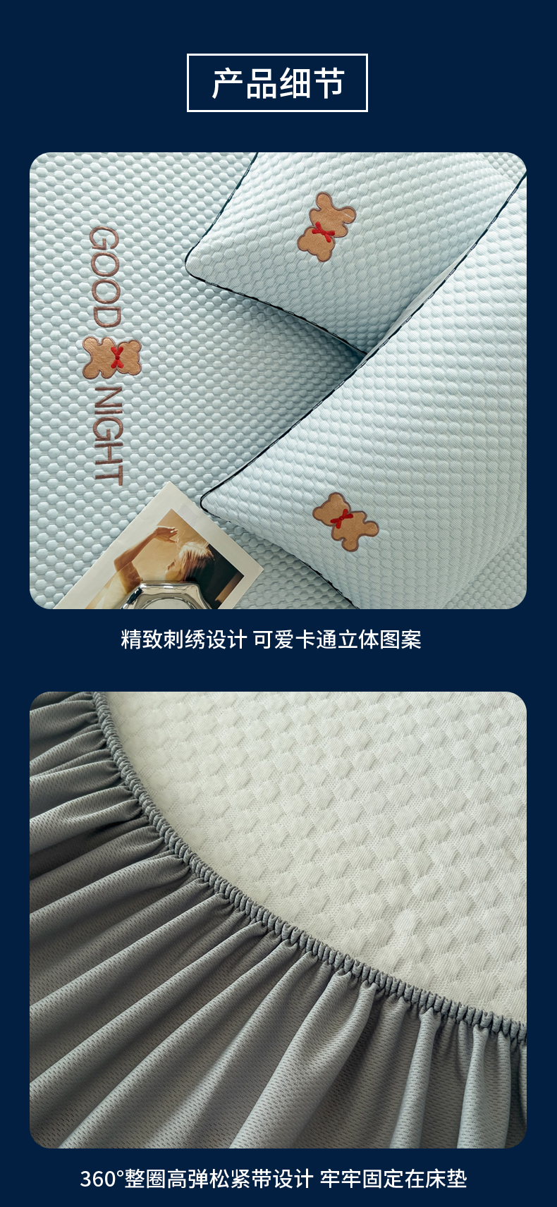 当前位置: 91家纺网 > 商品网购 > 床上用品 > 凉席 > 其他凉席 > 阿牛席业2025新款凉感软席系列-E-凉感嵌边豆豆床笠 晚安-蓝(嵌边床笠)