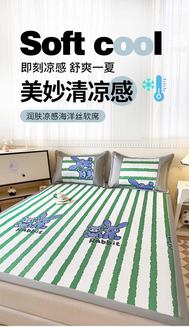 商品名称:阿牛席业 2025新款凉感印花软席系列一 条纹兔
