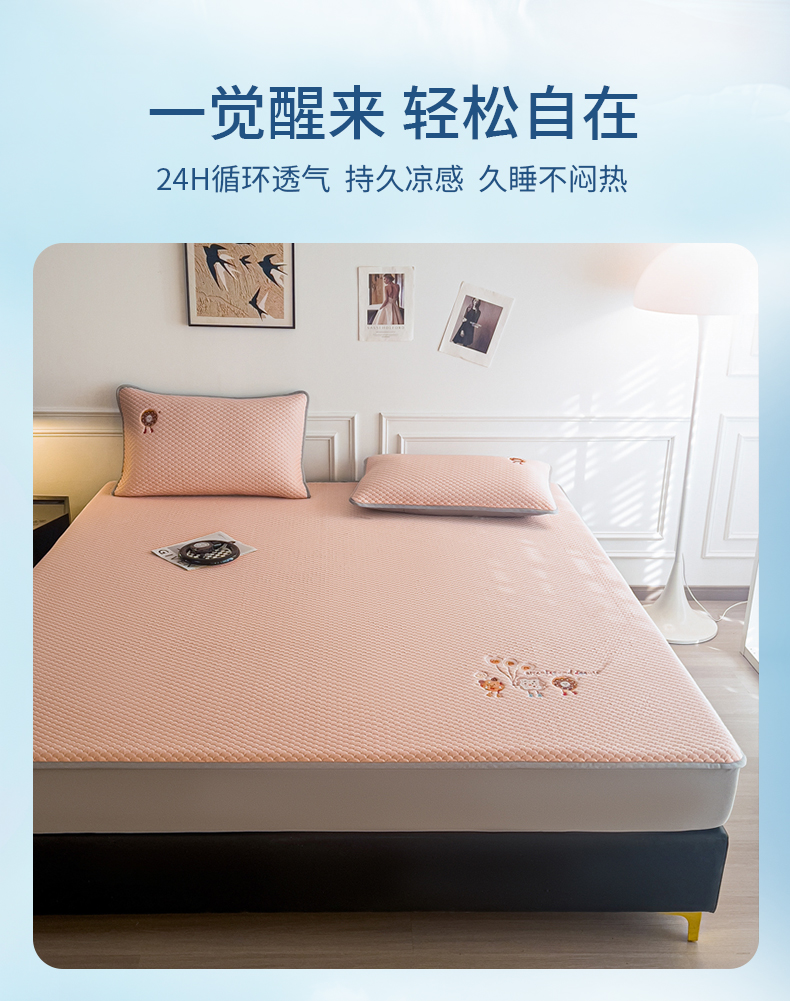 商品名称:阿牛席业2025新款凉感软席系列-C-凉感素色绣花床笠 POLO熊-粉