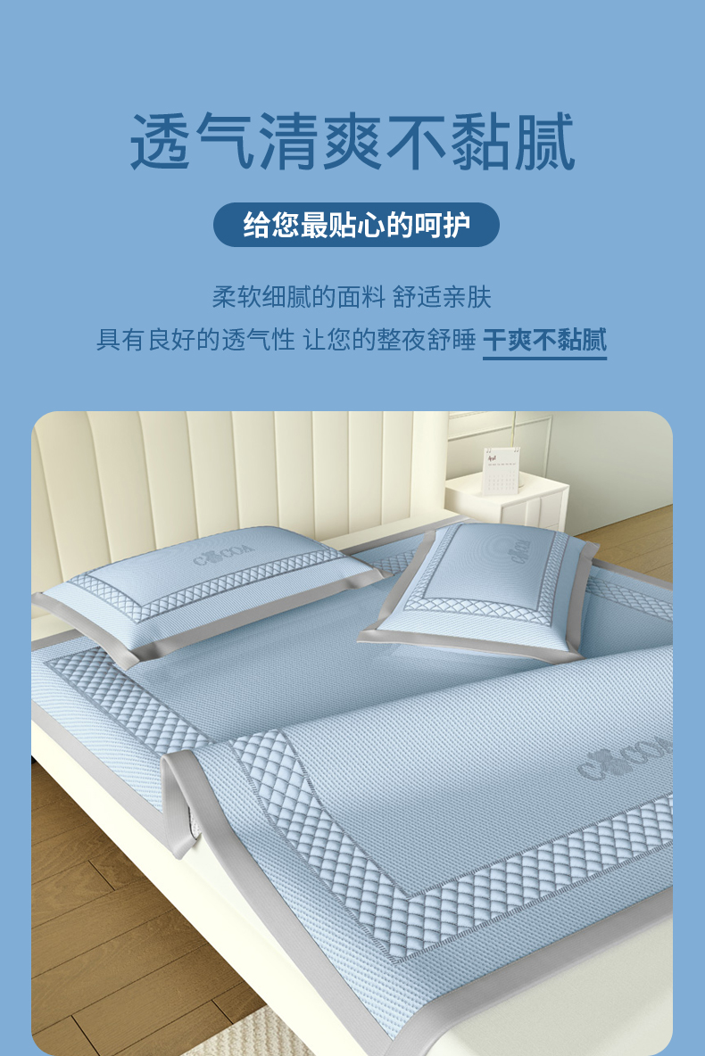 (总)阿牛席业2025新款冰藤凉席系列冰藤清爽床笠席,清爽-蓝【床笠款】,清爽-咖【床笠款】