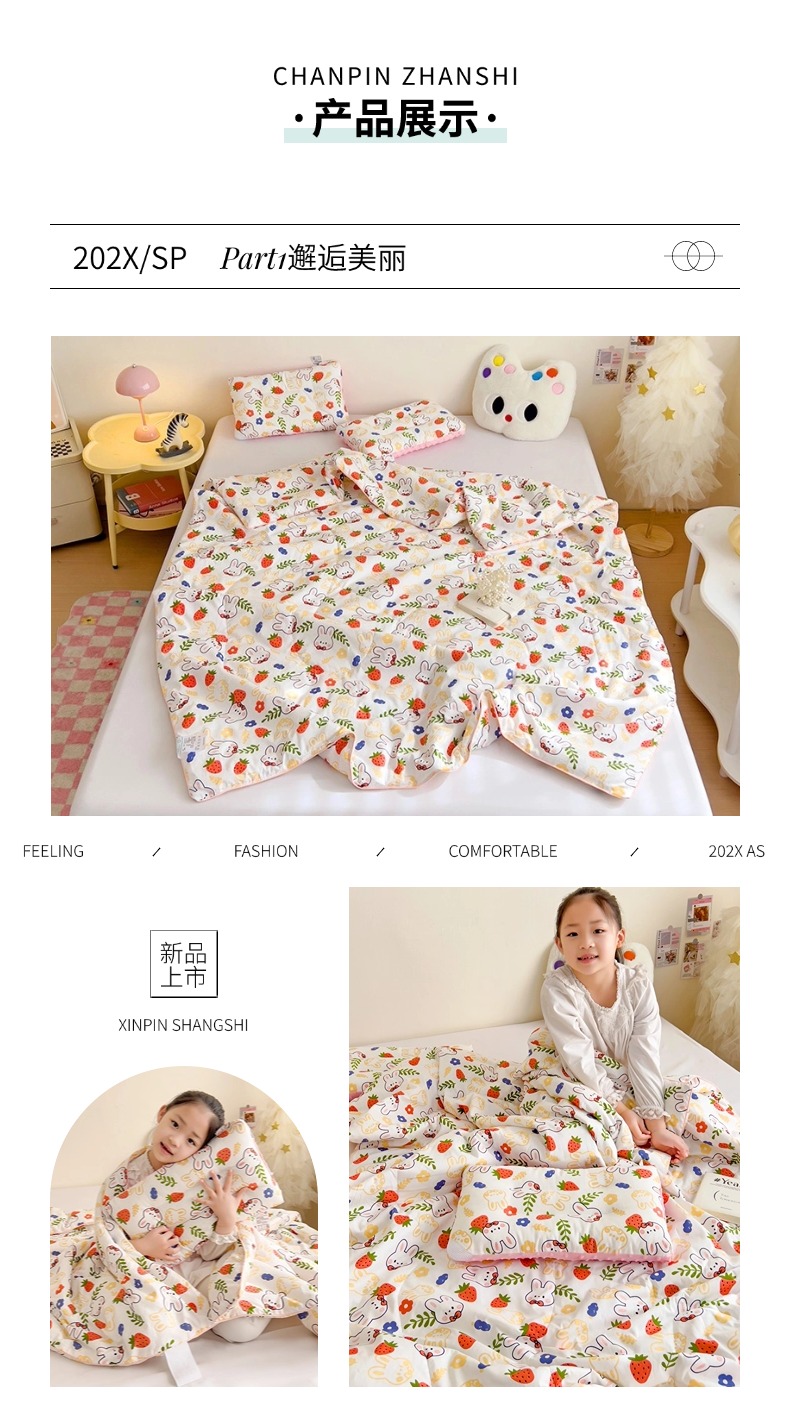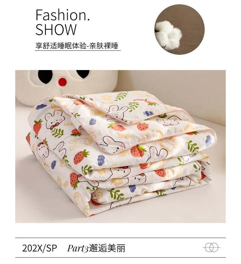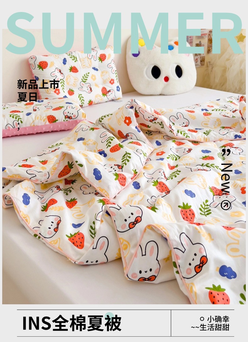 商品名称:十九色 2025新款全棉13372ins儿童夏被 大白兔