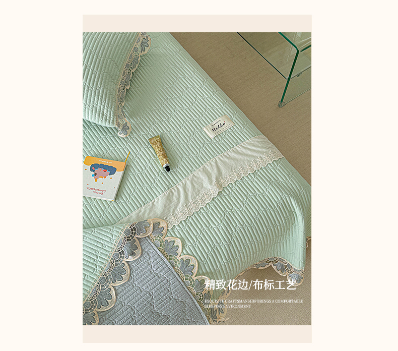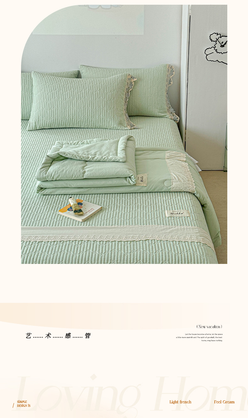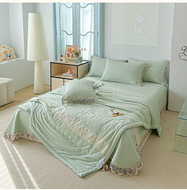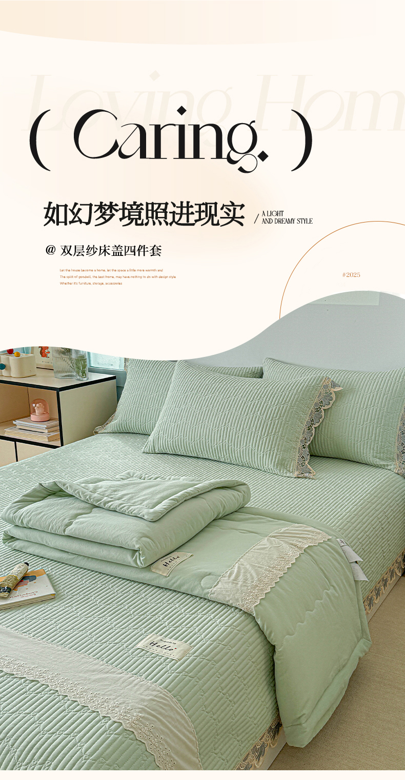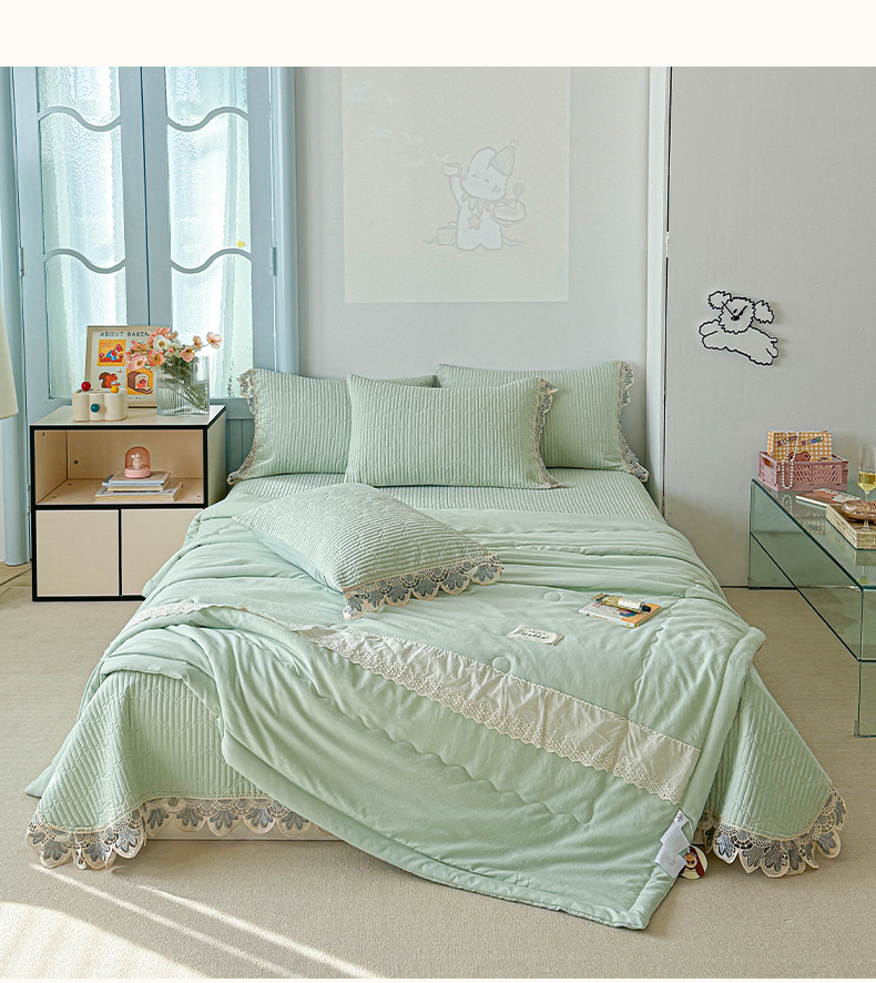 • 91家纺网 家纺一手货源 找家纺 源舜家纺 2025双层纱床盖三件套夏被四件套 薄荷绿
