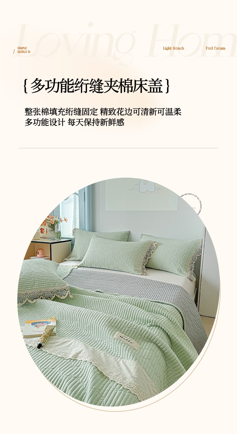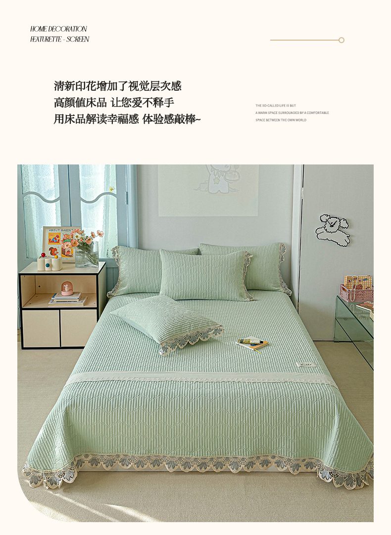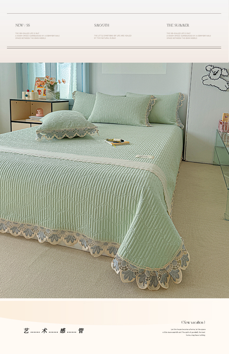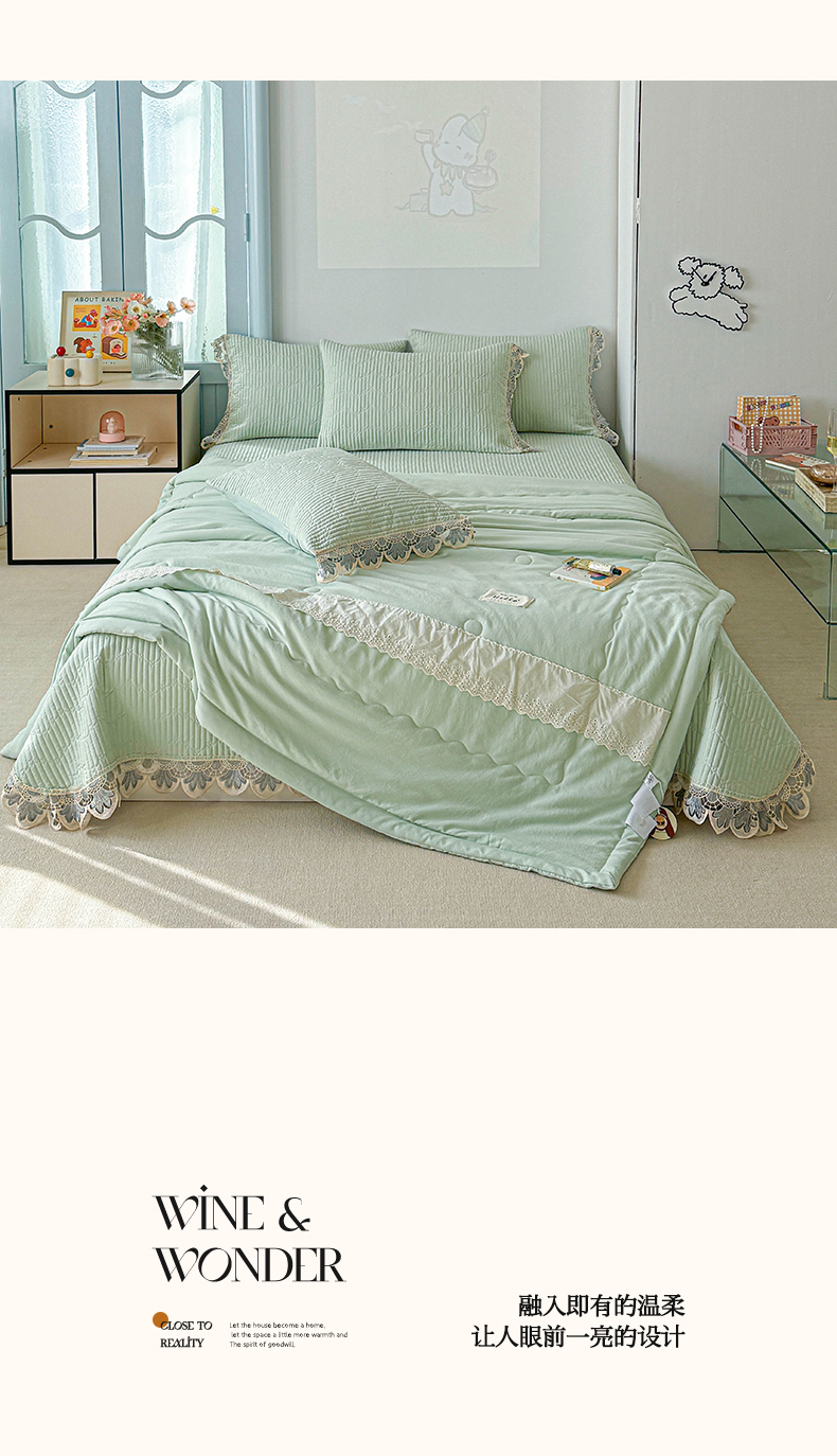 • 91家纺网 家纺一手货源 找家纺 源舜家纺 2025双层纱床盖三件套夏被四件套 薄荷绿