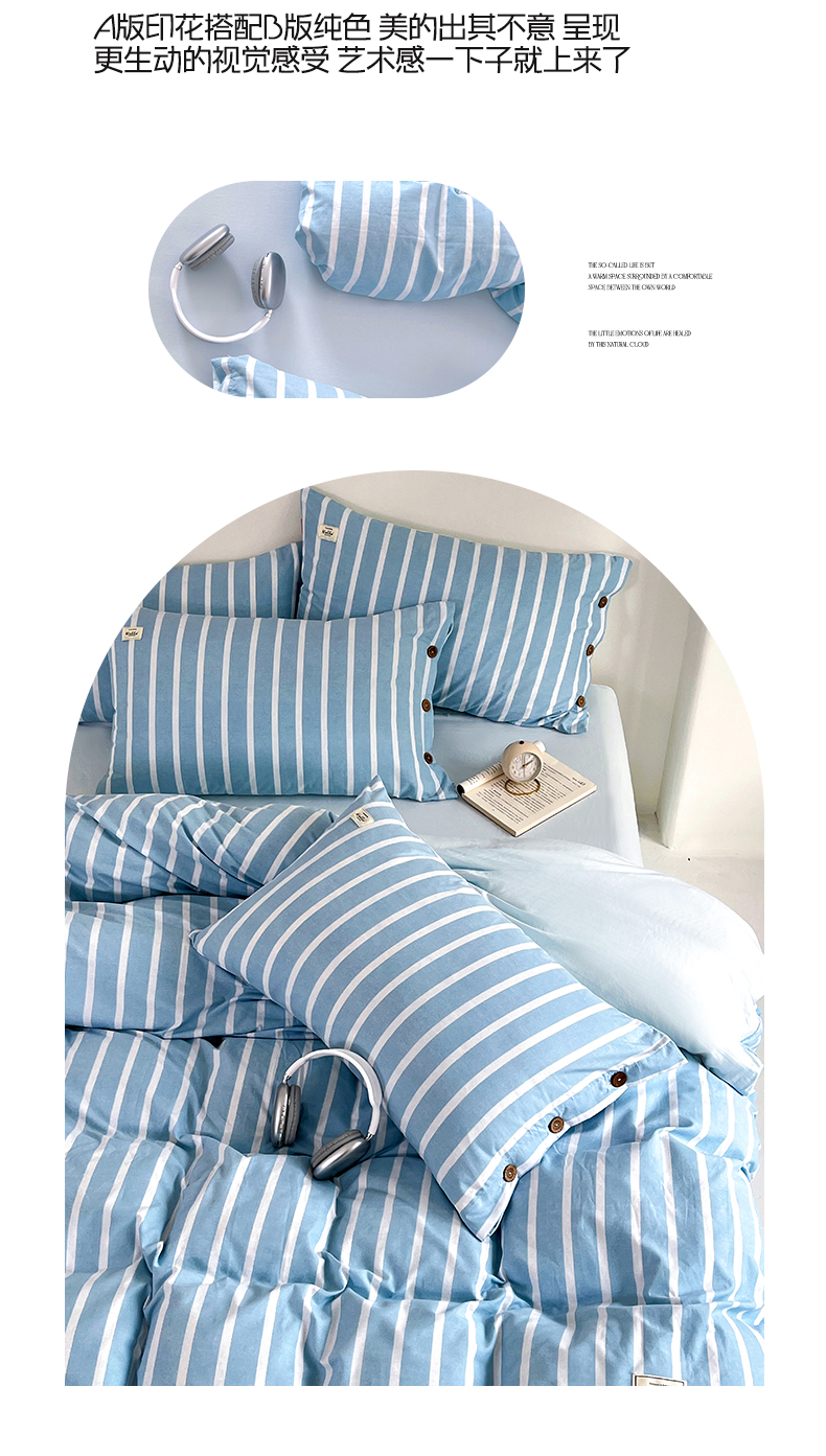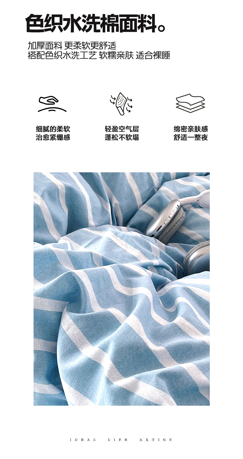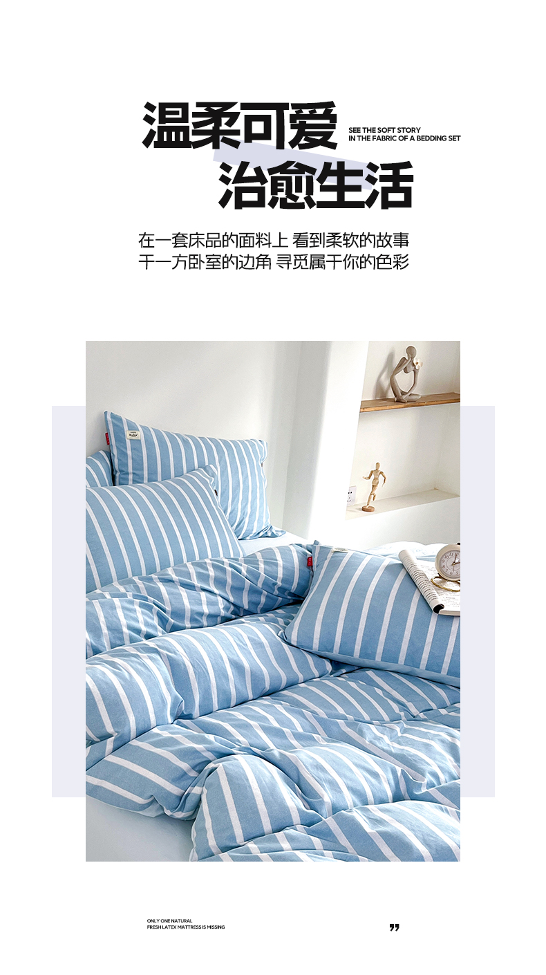 商品名称:睡美美 2025新款加厚色织水洗棉印染条纹四件套 海盐奶蓝