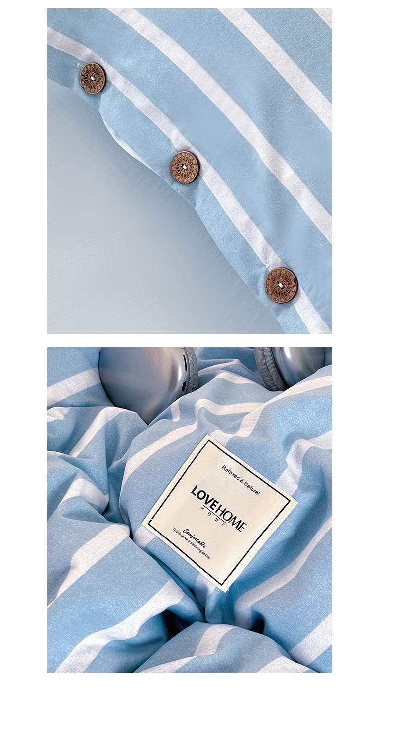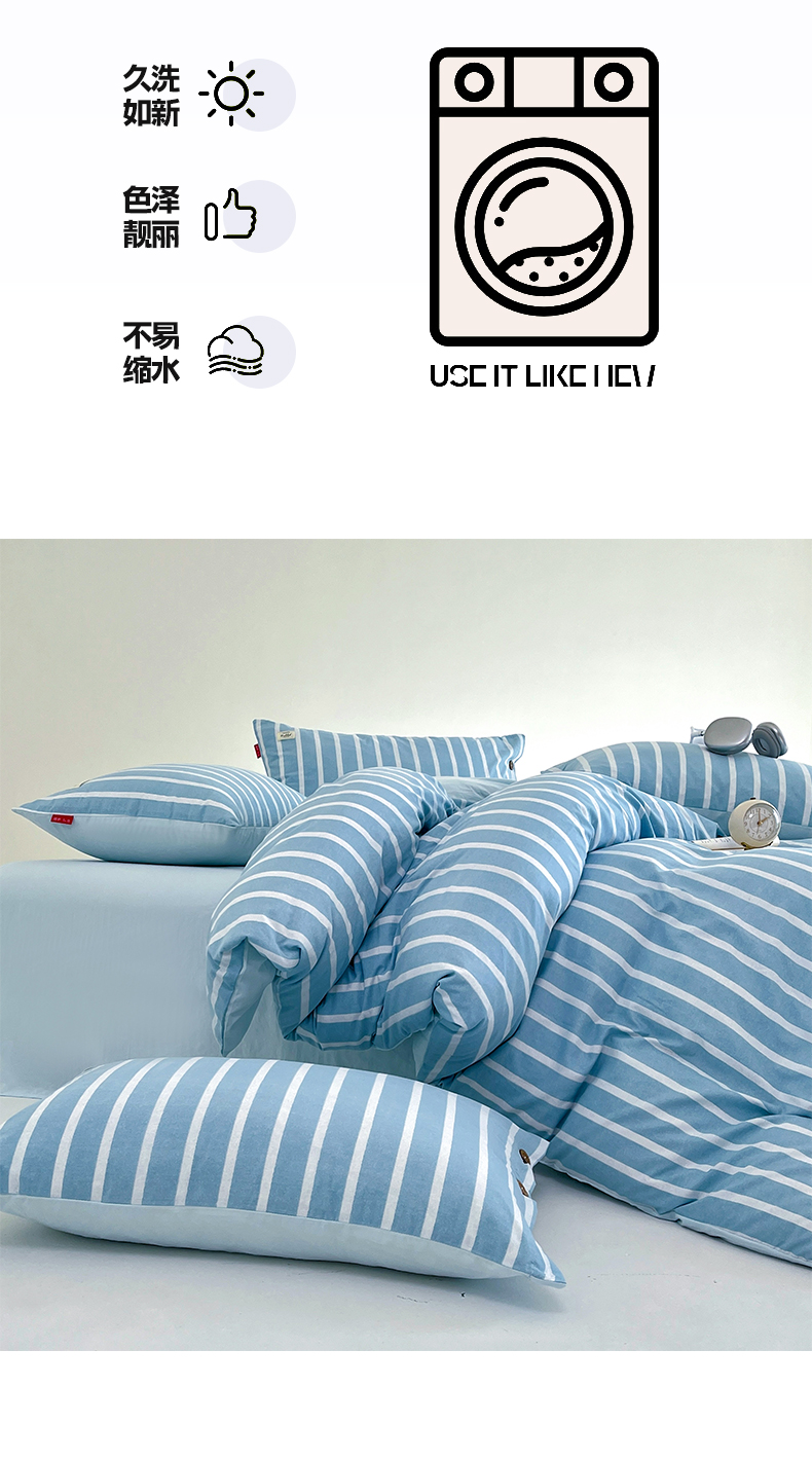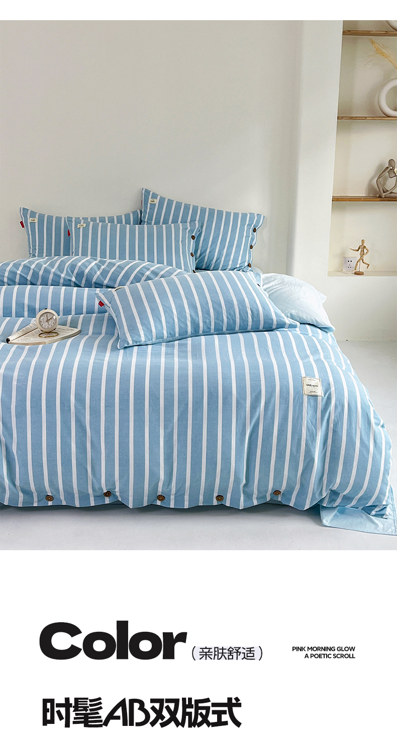 商品名称:睡美美 2025新款加厚色织水洗棉印染条纹四件套 海盐奶蓝