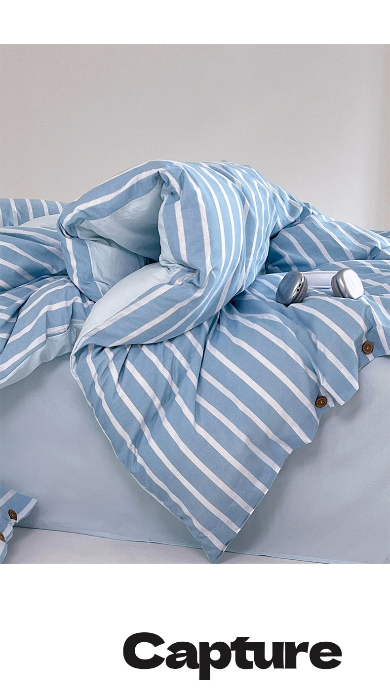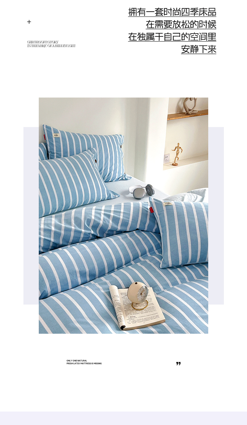 睡美美 2025新款加厚色织水洗棉印染条纹四件套 海盐奶蓝