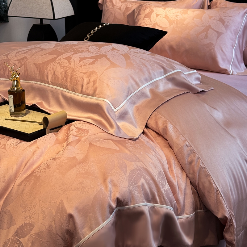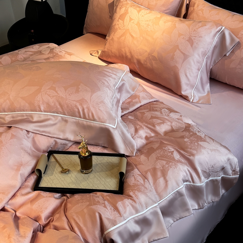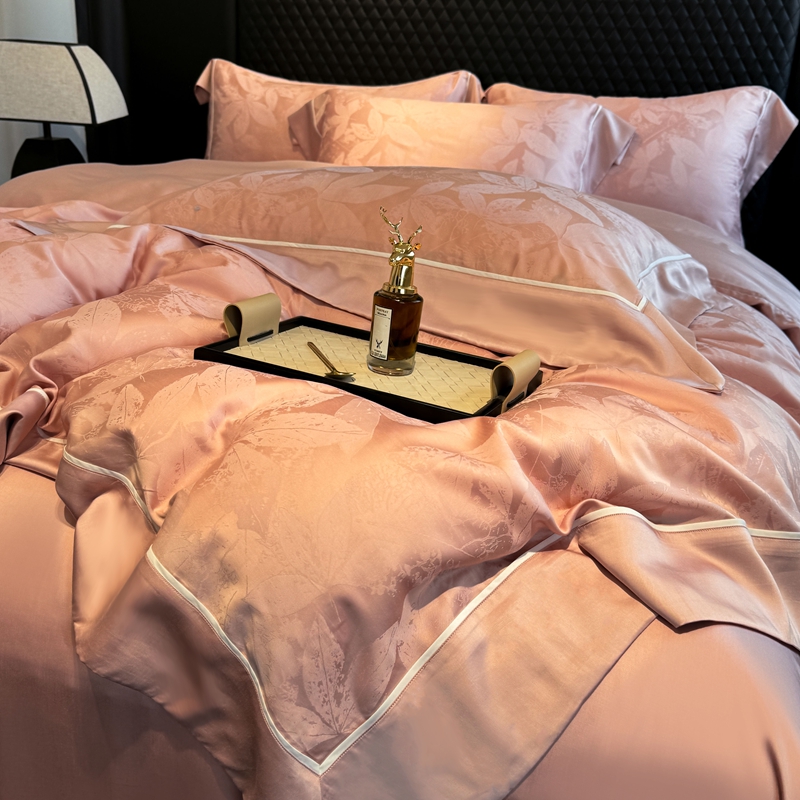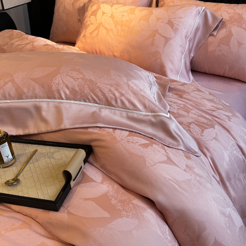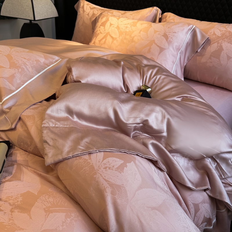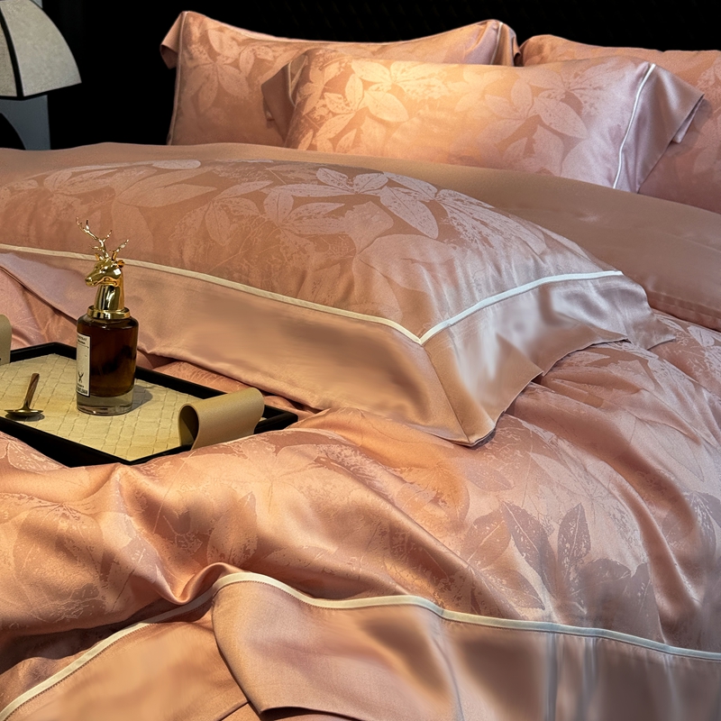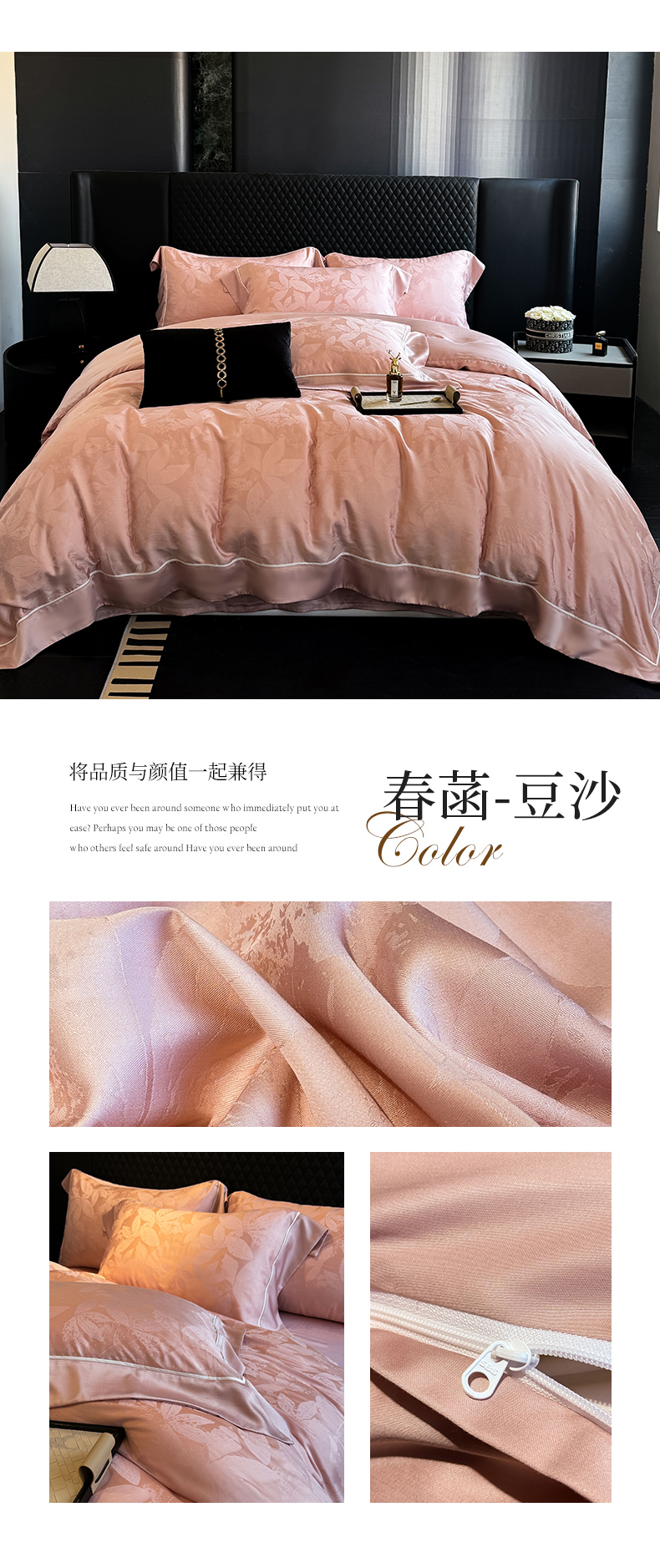娇逸2025新款60s兰精天丝提花四件套 春菡-豆沙