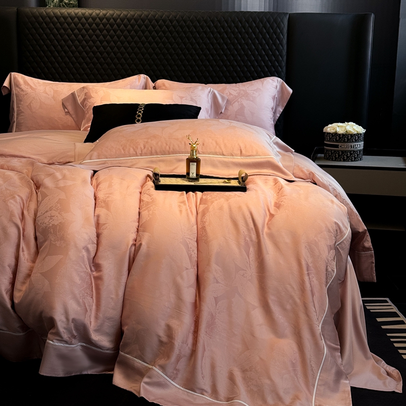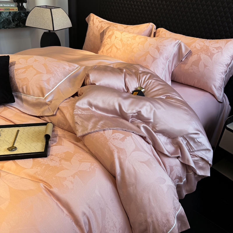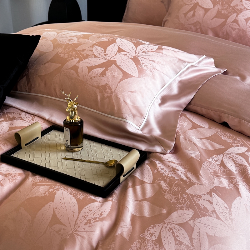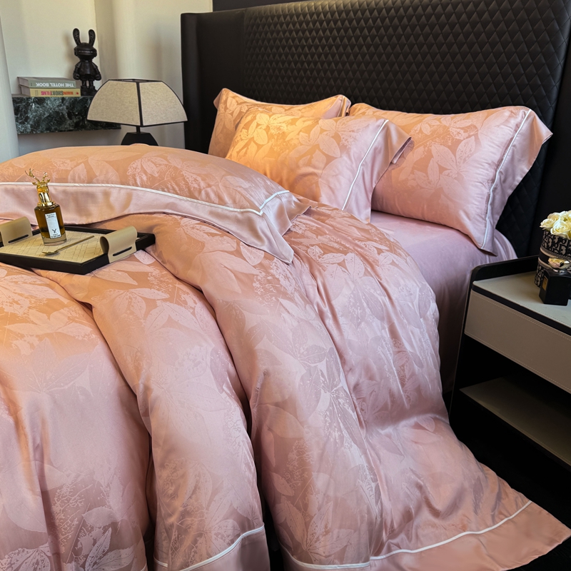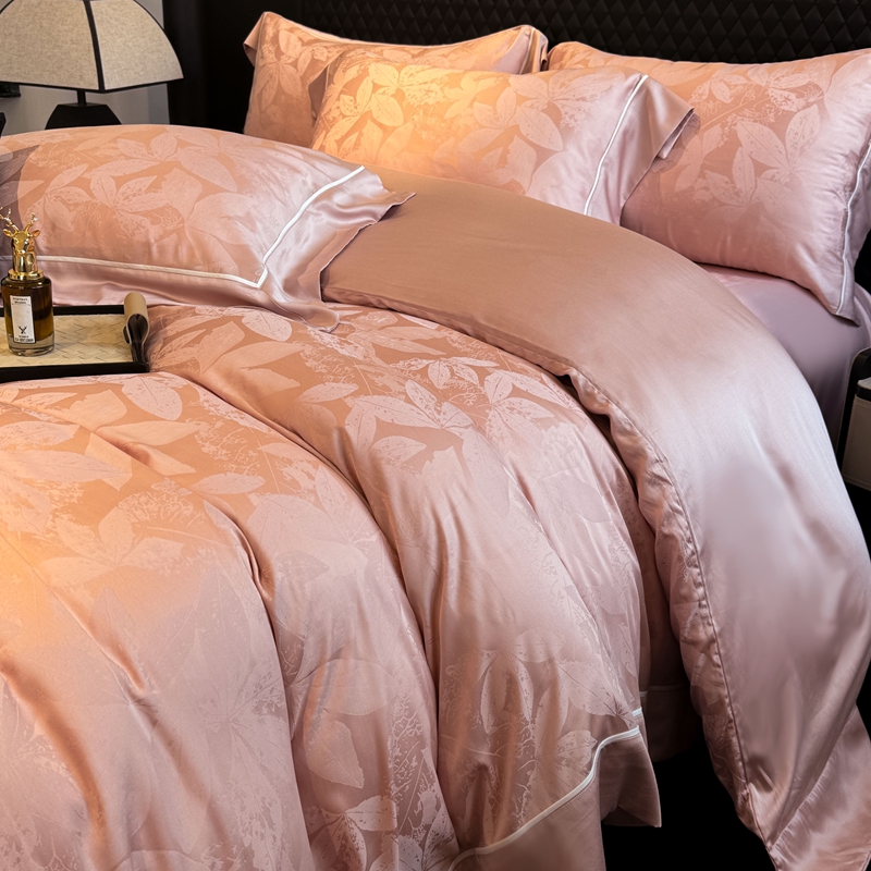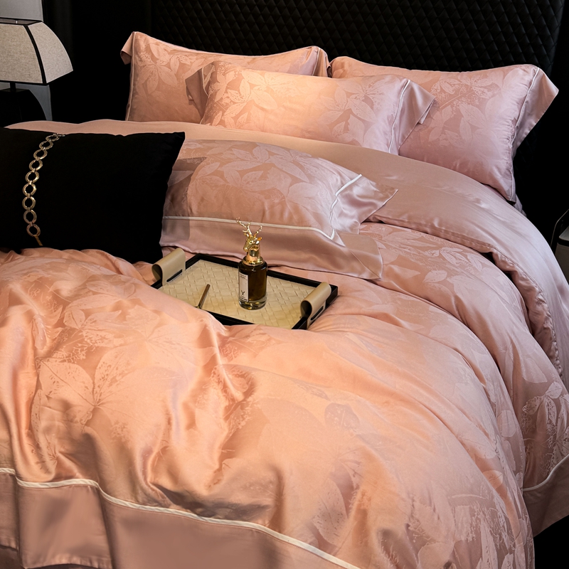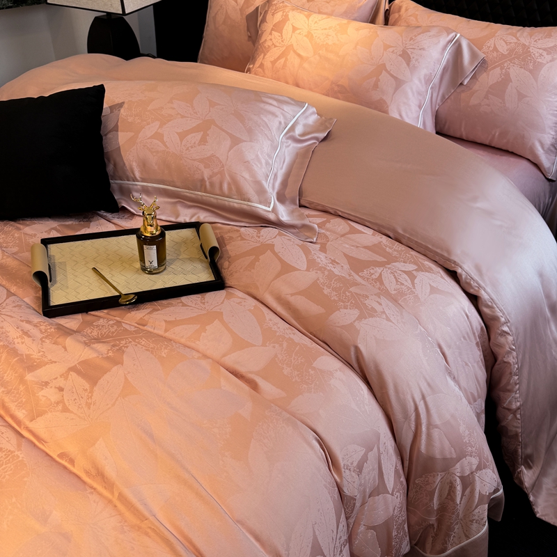 娇逸2025新款60s兰精天丝提花四件套 春菡-豆沙
