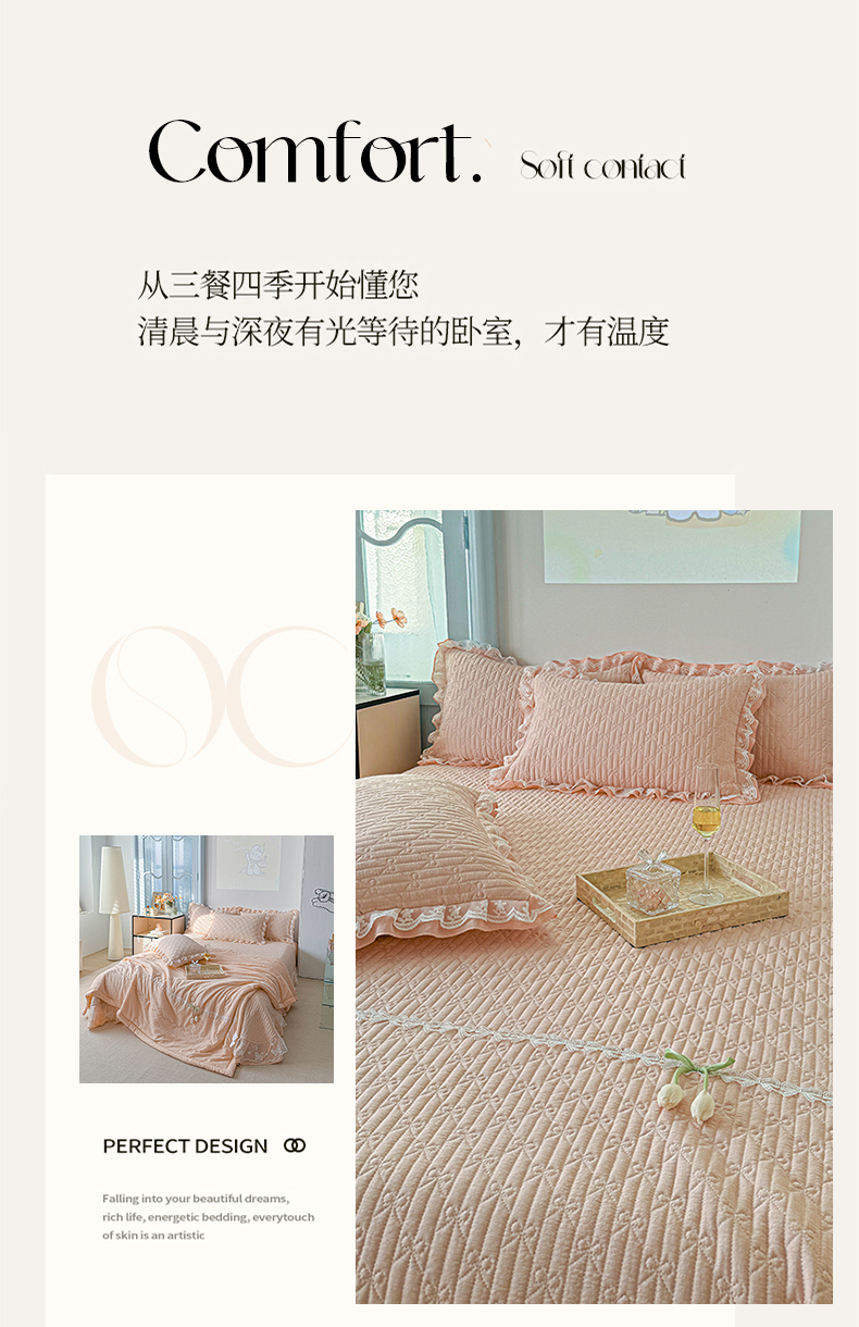 (总)源舜家纺 2025新款色织棉简约韩系花边床盖三件套,简约灰,简约粉,简约绿,简约驼,简约蓝
