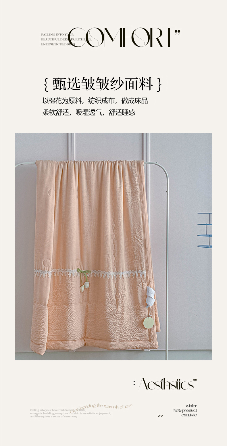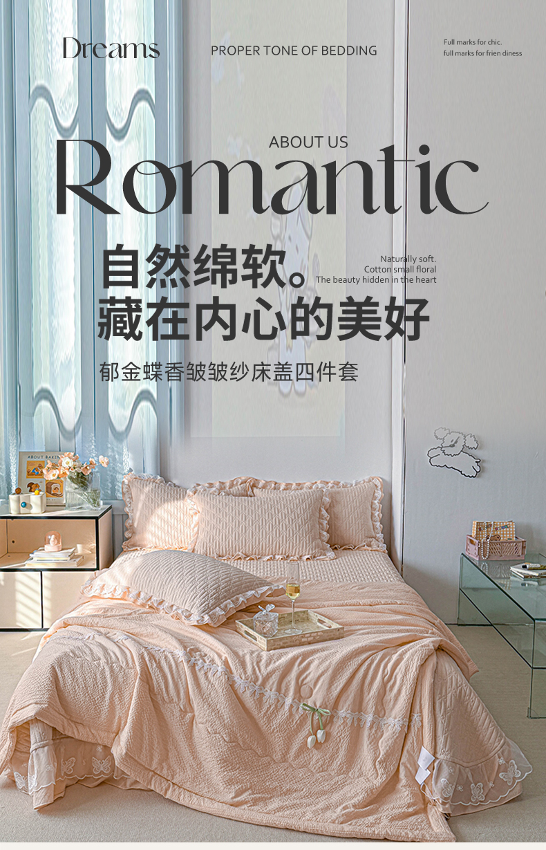 商品名称:源舜家纺 2025新款郁金蝶香皱皱纱床盖夏被四件套 玉色