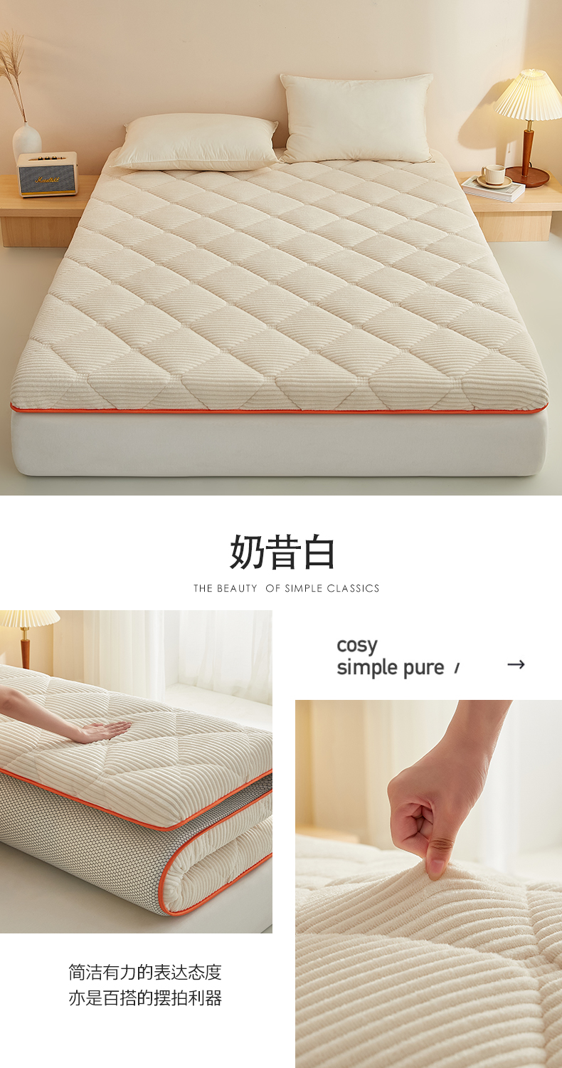 (总)2025新款柔软舒适魔法绒棉花床垫系列-学生款,奶昔白,清新粉,驼色,星空灰,祖母绿