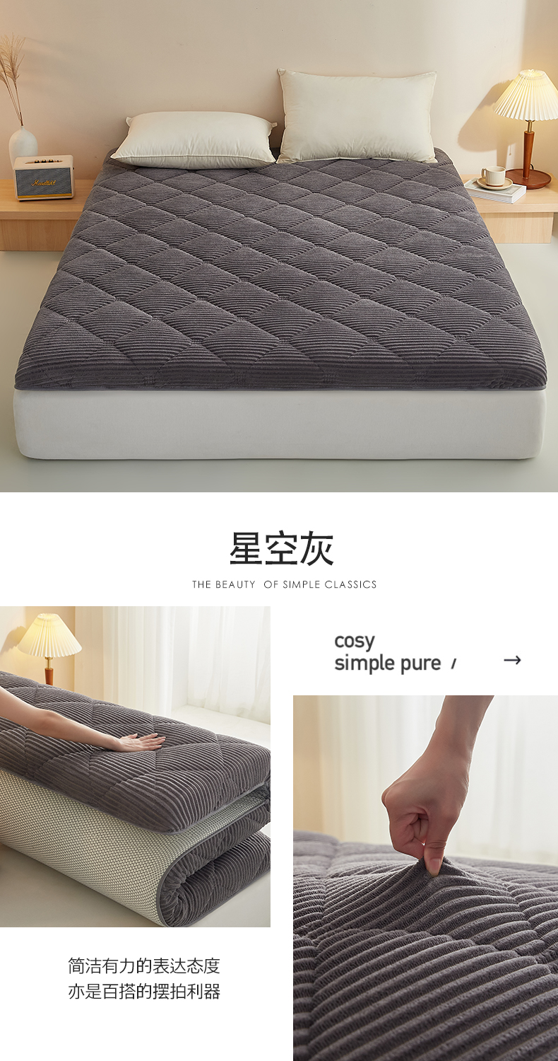 (总)2025新款柔软舒适魔法绒棉花床垫系列-成人款,奶昔白,清新粉,驼色,星空灰,祖母绿