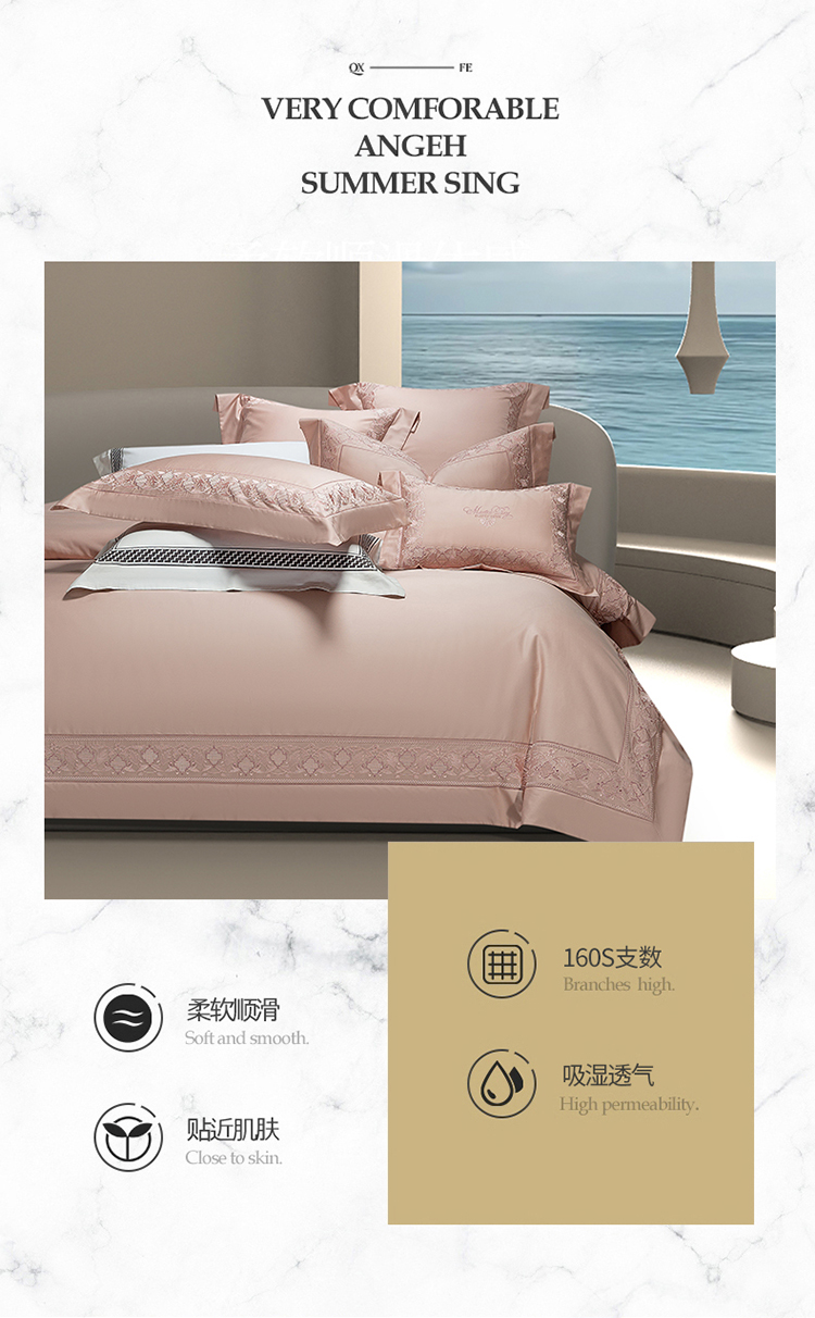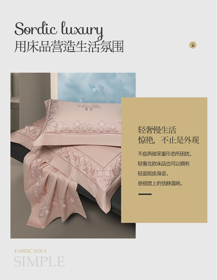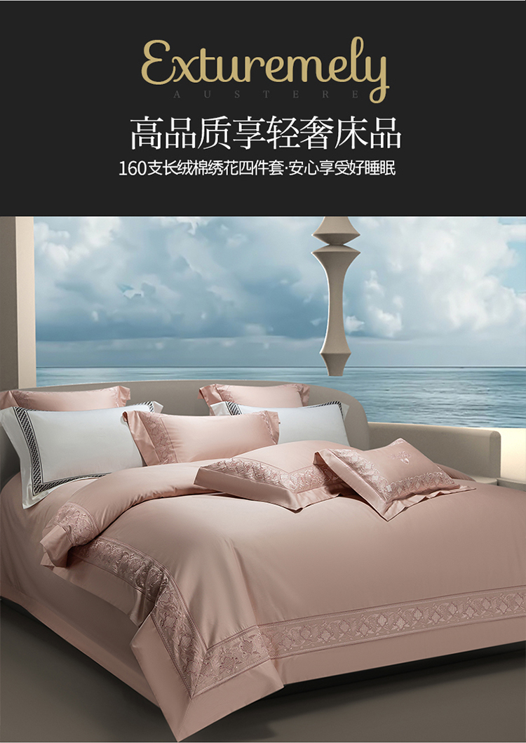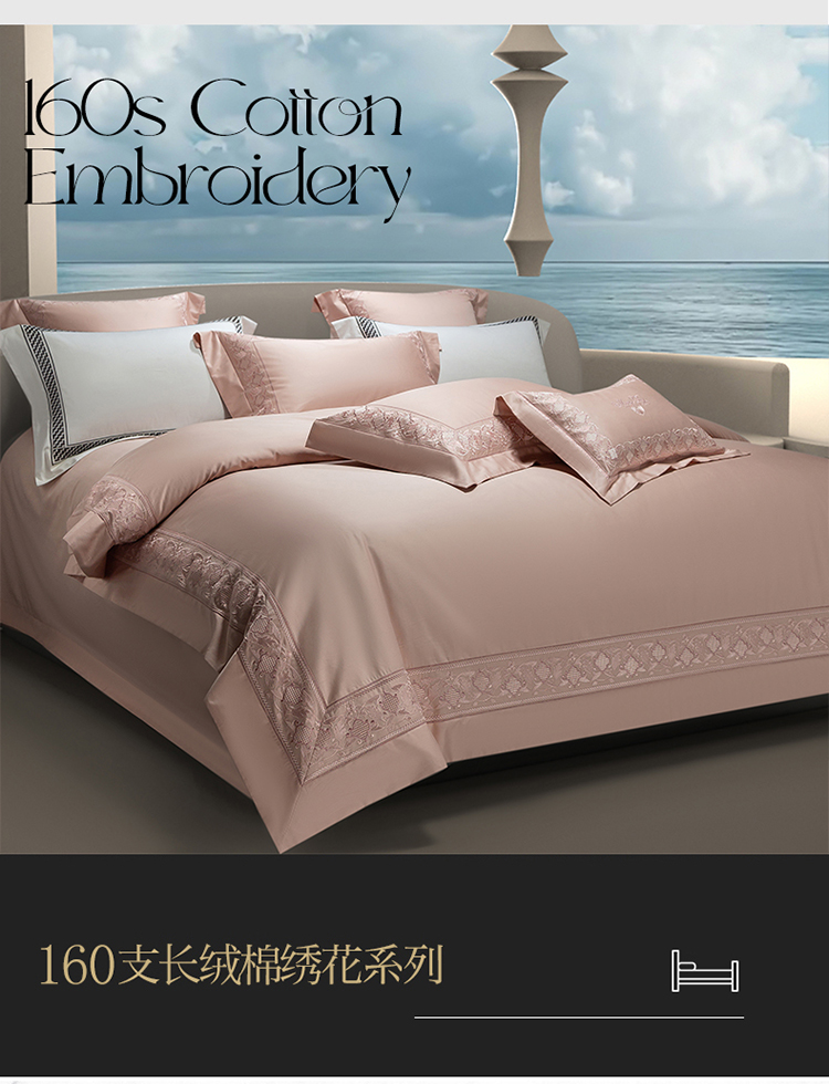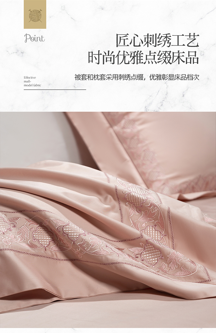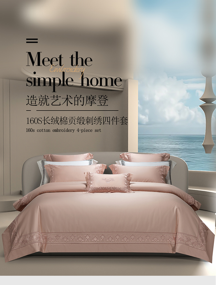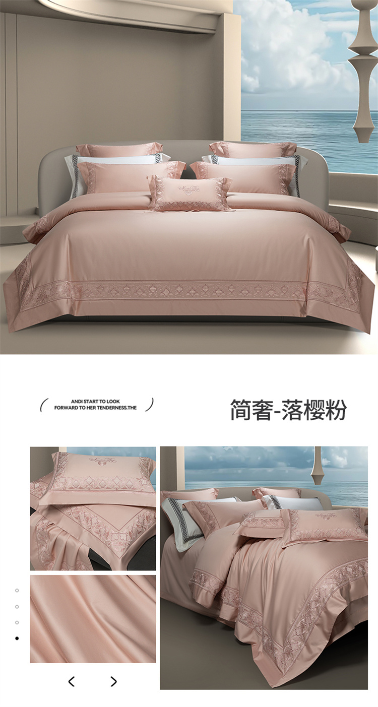 商品名称:高大尚婚庆馆 2025新款长绒棉四件套-简奢 简奢-落樱粉