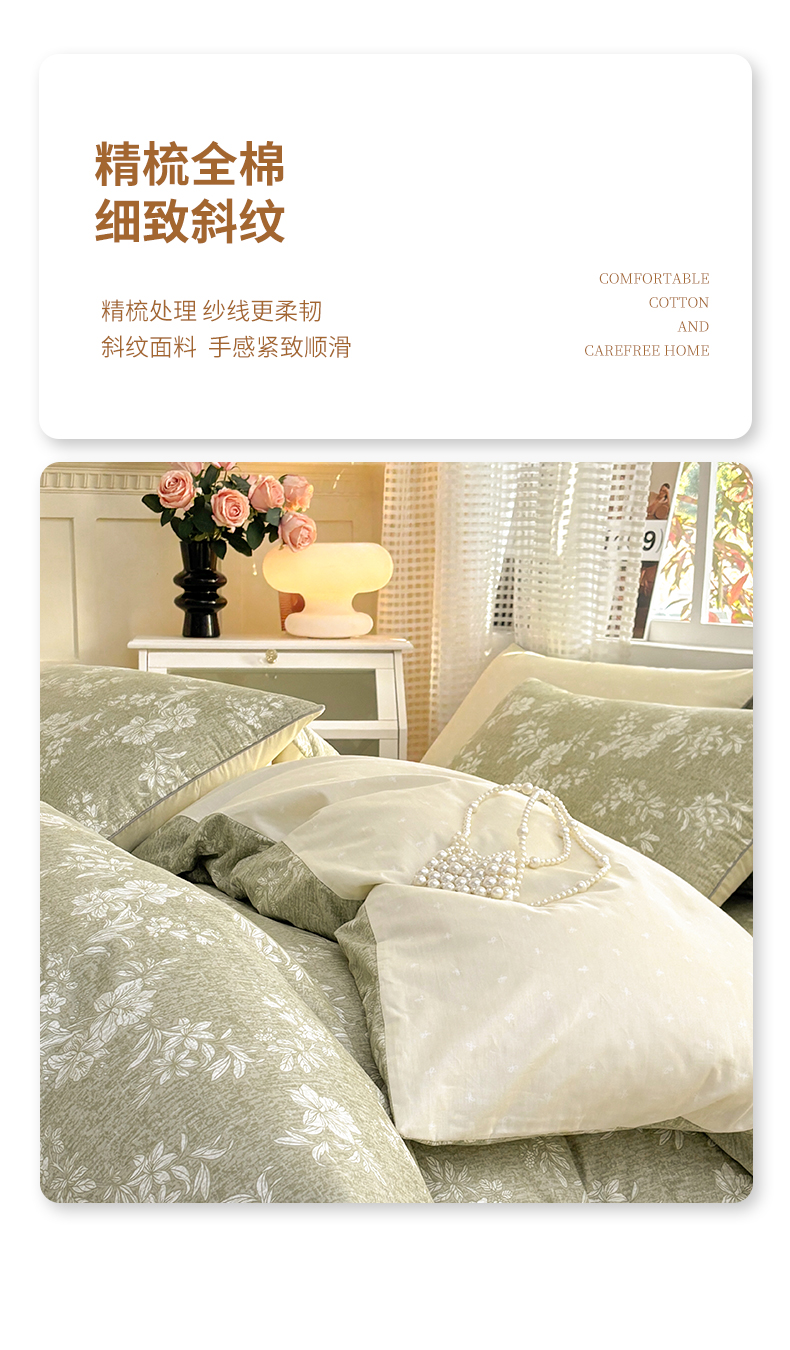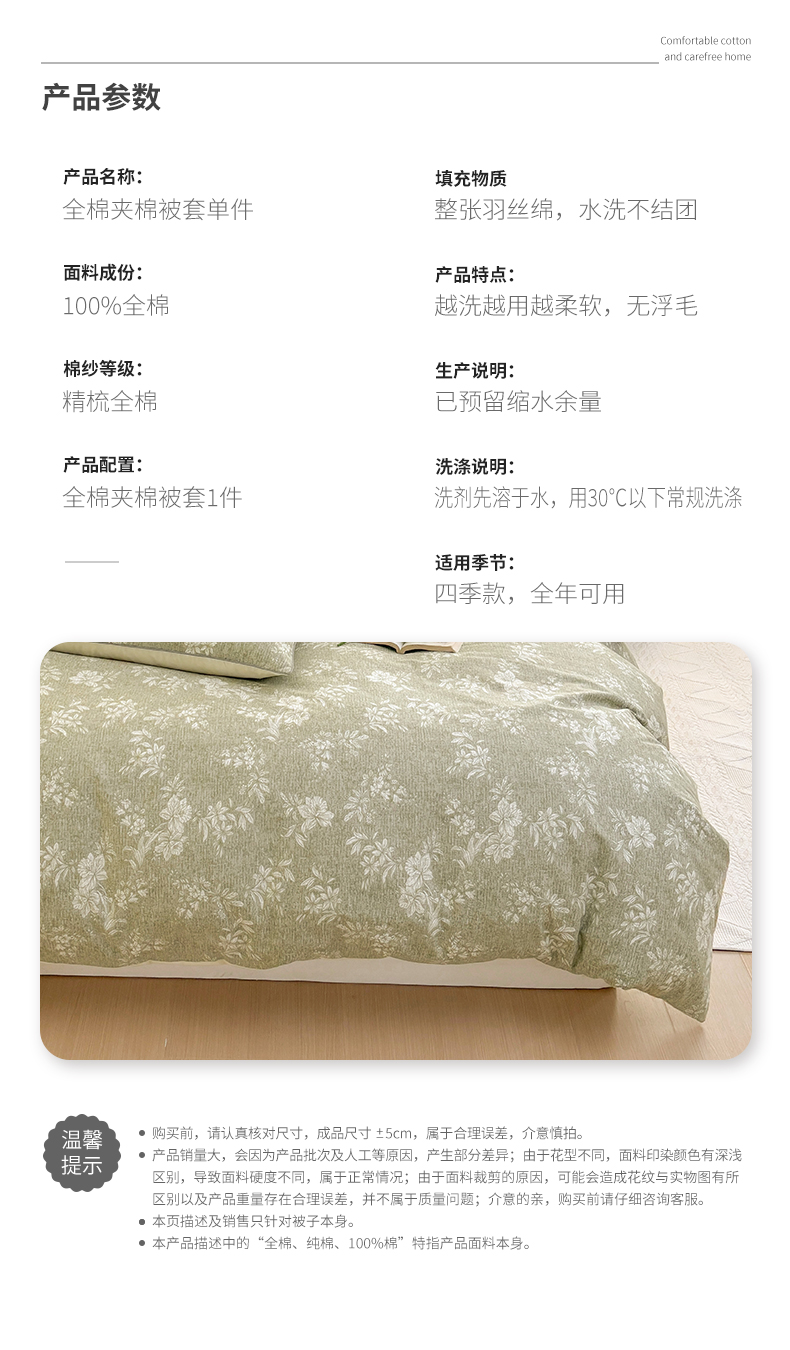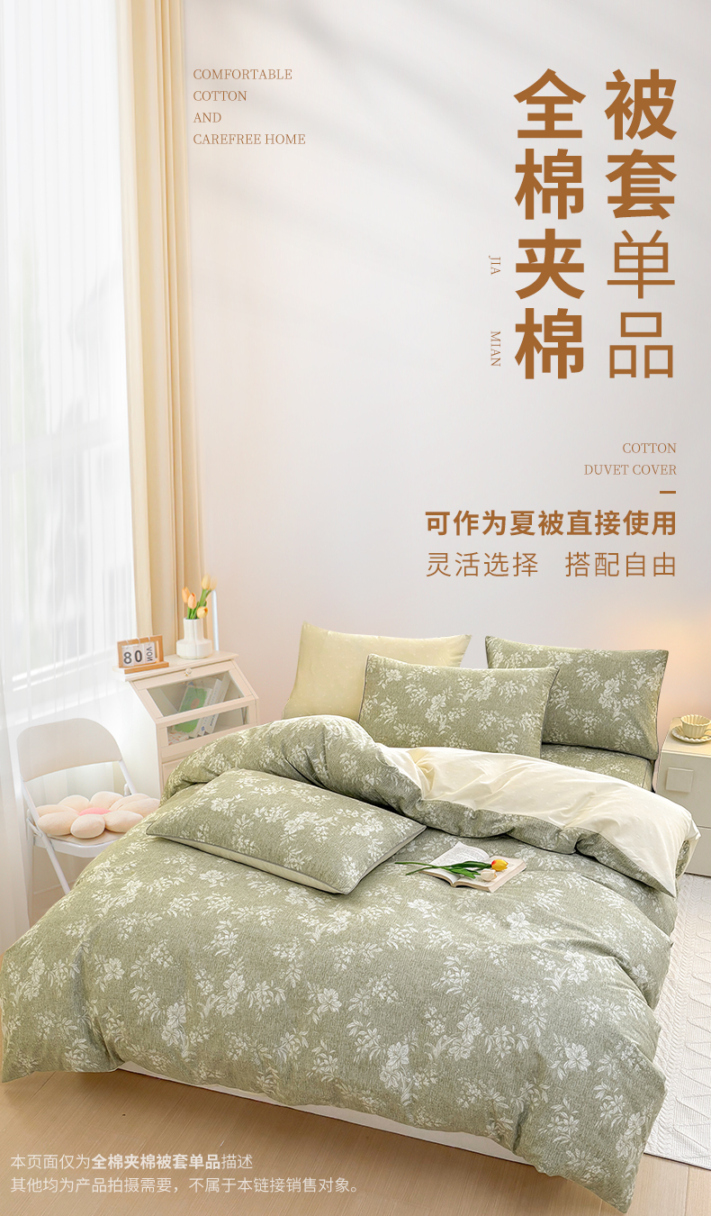 商品名称:元元被芯 2025新款40支13372全棉印花全棉隐藏式夹棉被套 颂雅