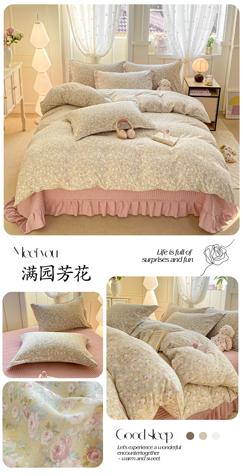 (总)梦莱斯 2025新款高克重云感棉四件套-花边款,赫拉,花盖绿,花盏灰,罗逸维绿,梦想熊,秋日记忆粉,若梦红,庭院春深,樱桃季,星星狗,灰调花笺,浅褐疏影,柔紫花绪,紫雾漫花
