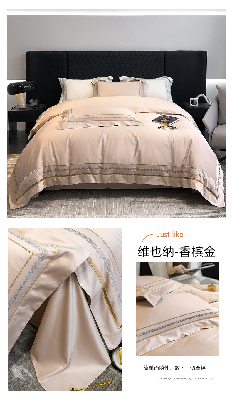 (总)家居1号2025新款40s133*76全棉纯棉千鸟格刺绣大拼角长绒棉四件套-维也纳,维也纳-粉豆沙,维也纳-绅士灰,维也纳-水兰,维也纳-太空灰,维也纳-香槟金,维也纳-象牙白