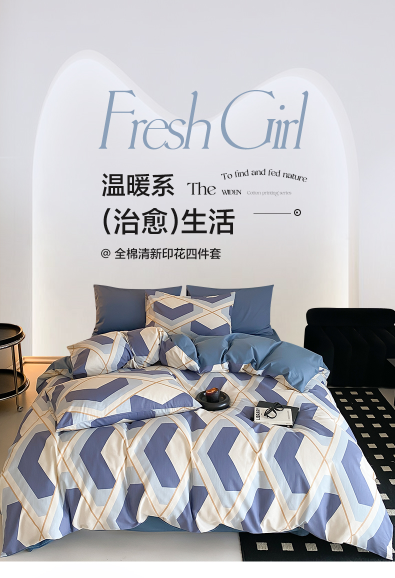 慕希家纺 2025新款全棉13372印花四件套 克洛伊