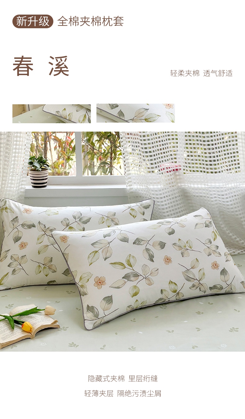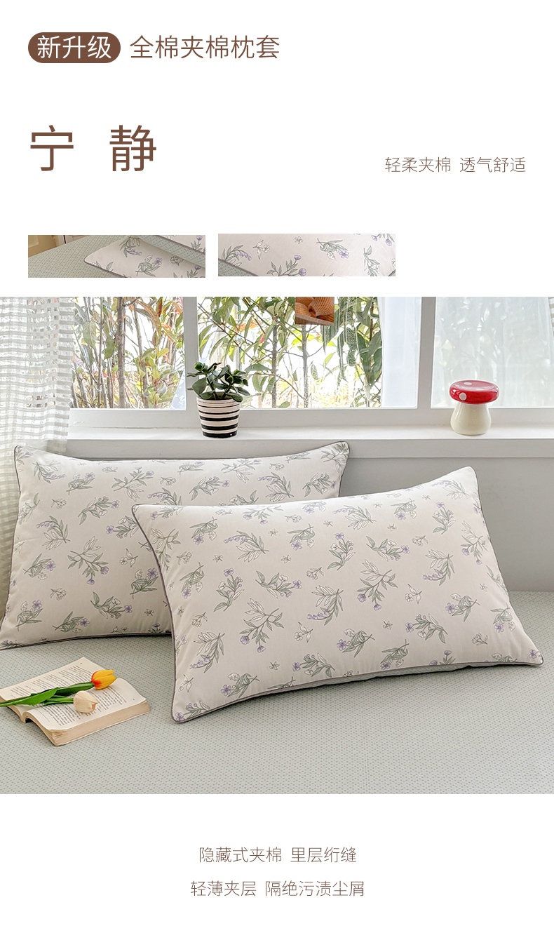 商品名称:元元被芯 2025新款40支13372全棉印花全棉隐藏式夹棉枕套 蔓羽