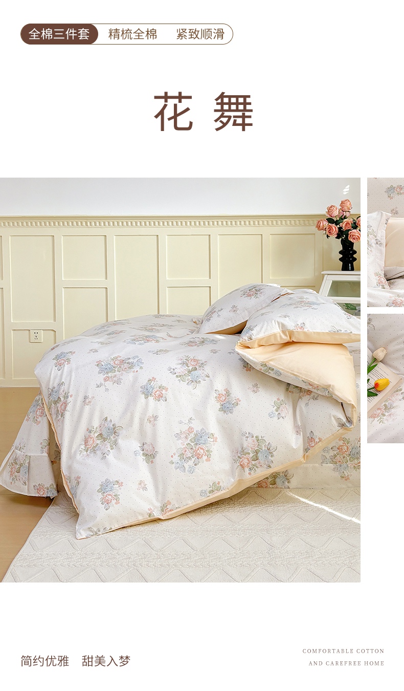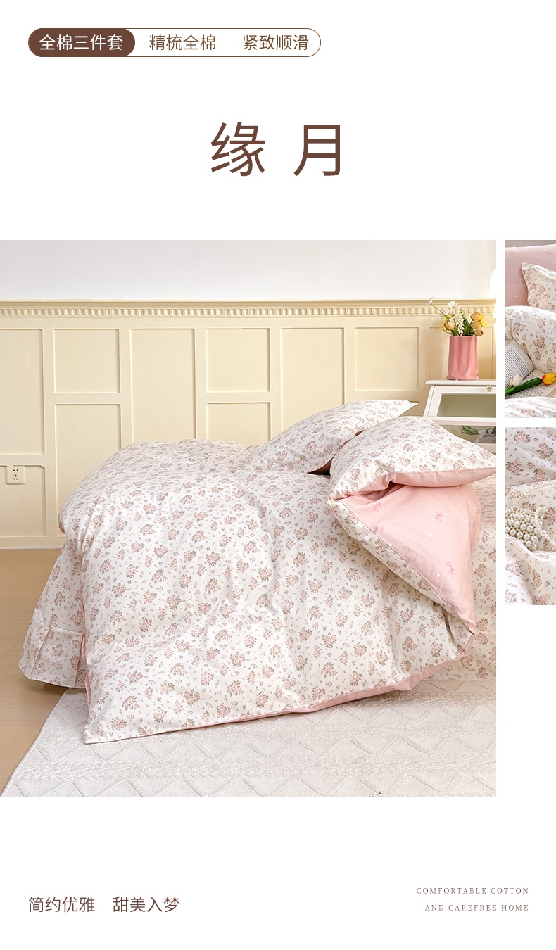 当前位置: 91家纺网 > 商品网购 > 床品套件 > 三件套 > 元元被芯 2025新款40支13372全棉印花全棉三件套 梦湘