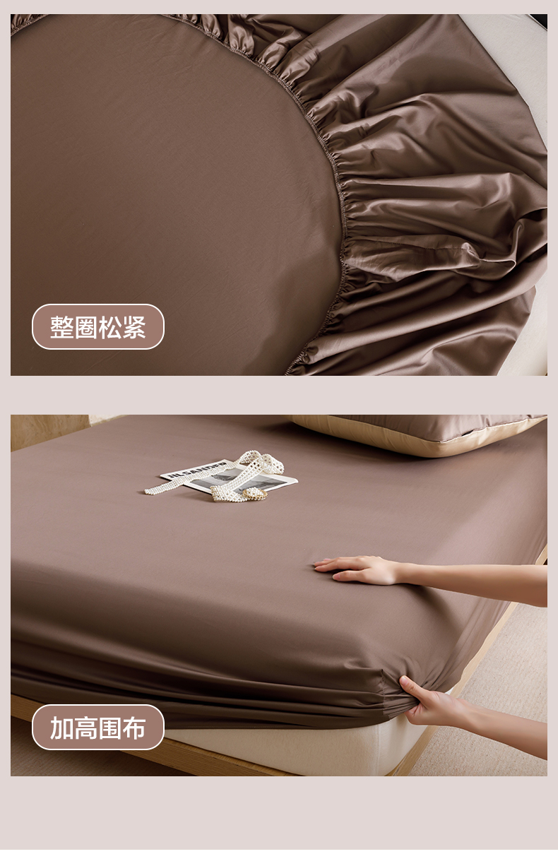 • 91家纺网 家纺一手货源 找家纺 寐绸家纺 2025新款纯棉60支长绒棉床笠系列 长绒棉床笠-烟灰咖