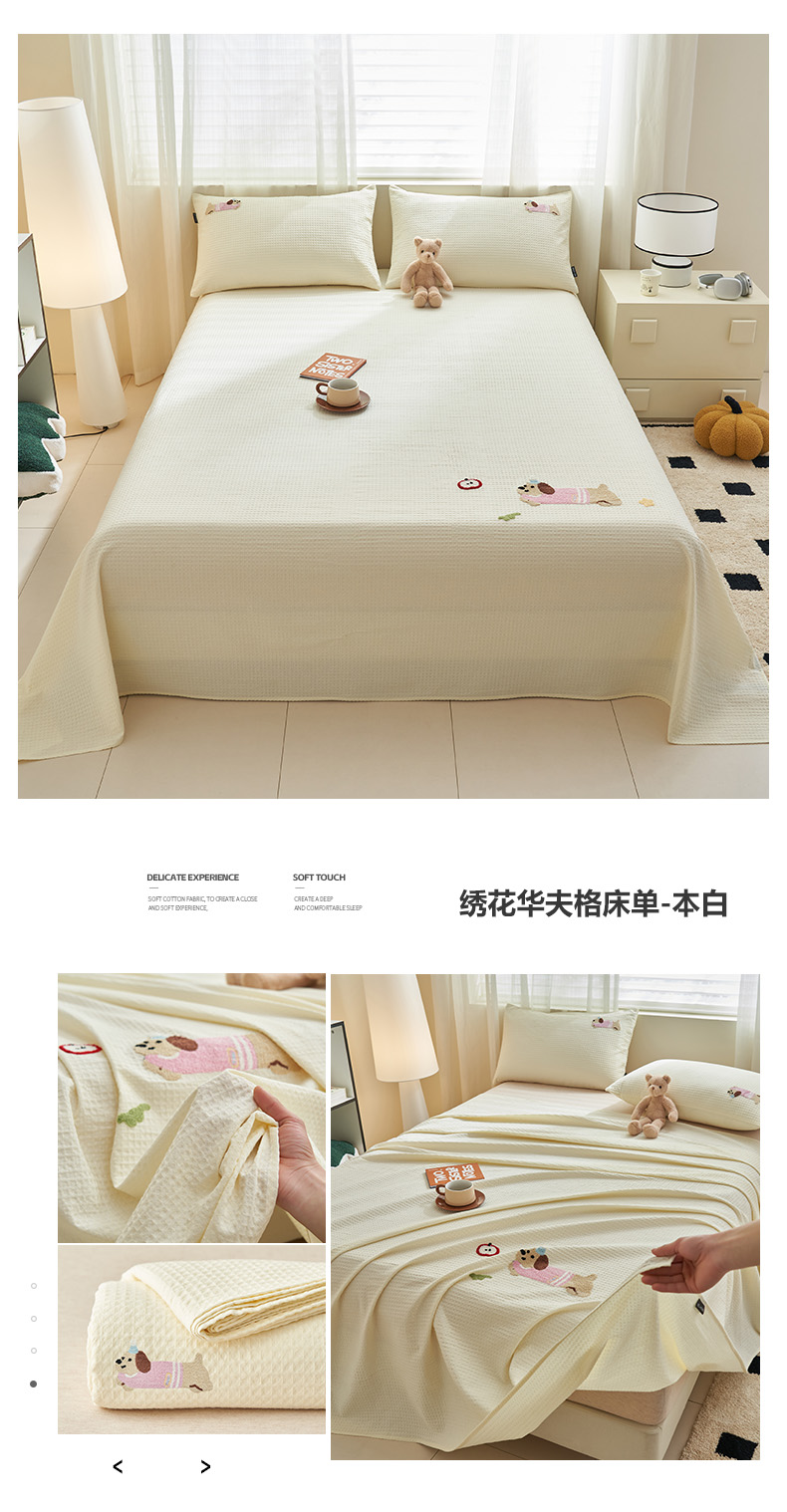 当前位置: 91家纺网 > 商品网购 > 床上用品 > 床单 > 寐绸家纺 2025新款纯棉华夫格毛巾绣单床单 绣花华夫格床单-天蓝