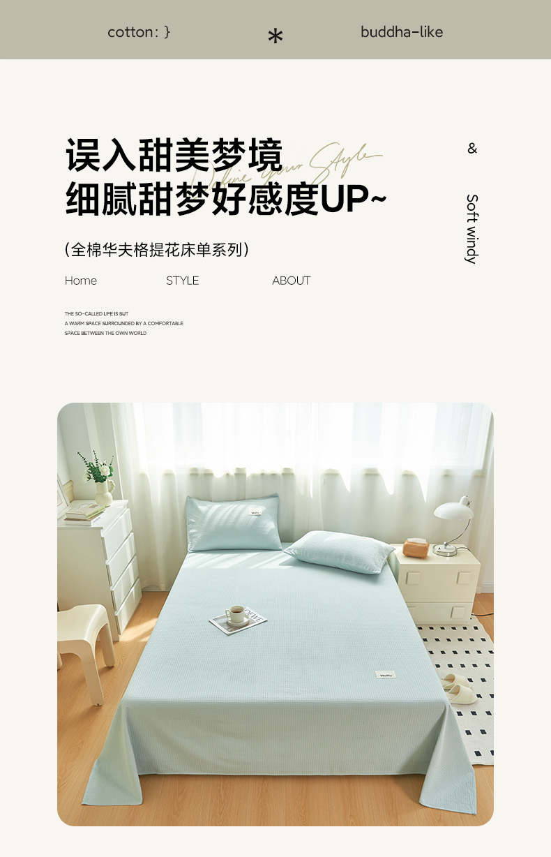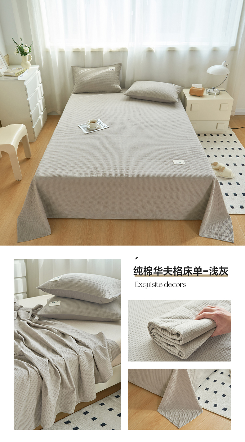 寐绸家纺 2025新款纯棉华夫格床单 纯棉华夫格床单-焦糖