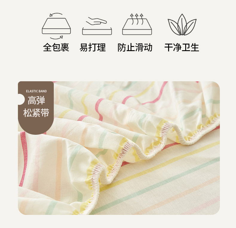 • 91家纺网 家纺一手货源 找家纺 寐绸家纺 2025新款纯棉色织水洗棉竖条单床笠 水洗棉竖条床笠-宽暗灰