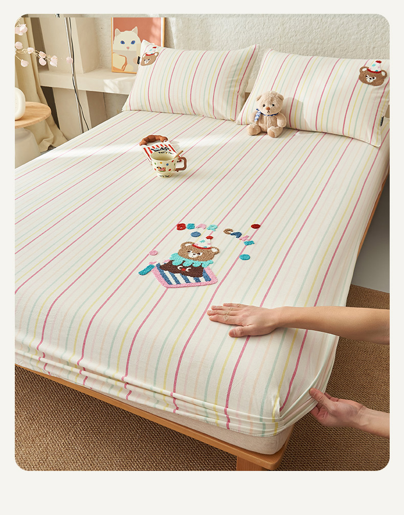 寐绸家纺 2025新款纯棉色织水洗棉竖条单床笠 水洗棉竖条床笠-宽暗灰